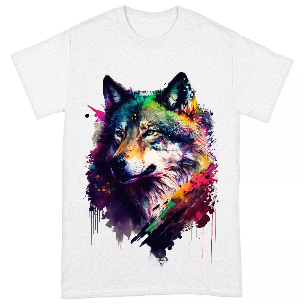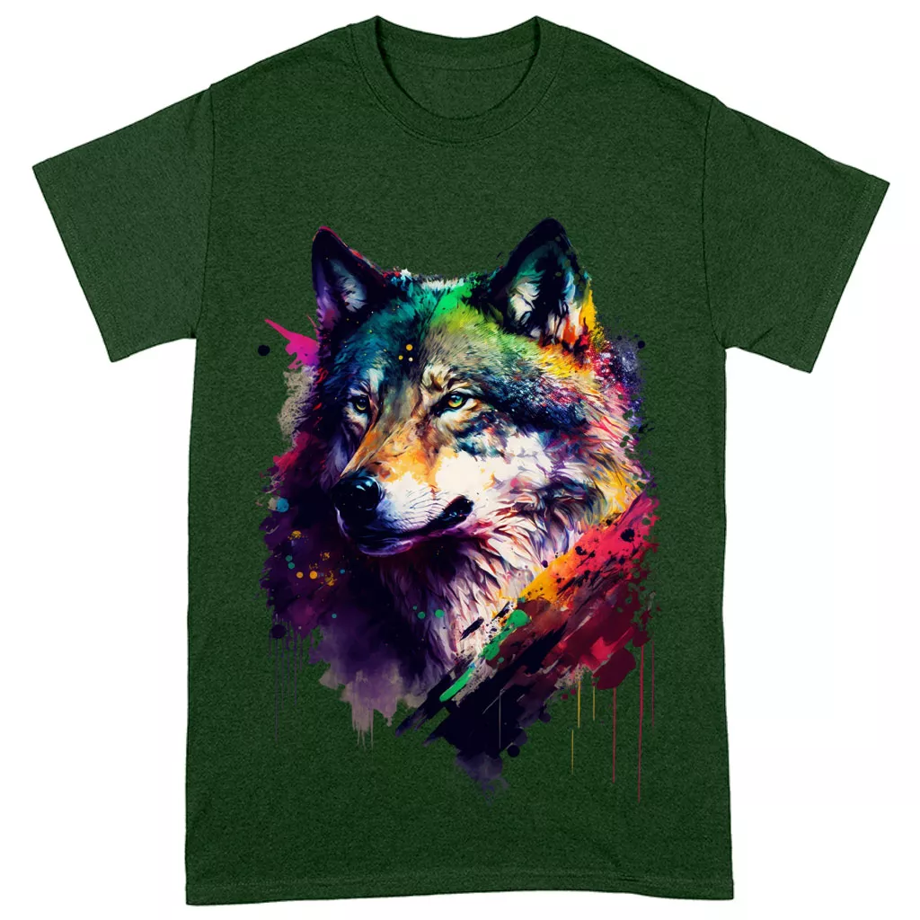 Colorful Wolf Heavy Cotton T-Shirt – Cool Art Tee Shirt – Printed T-Shirt