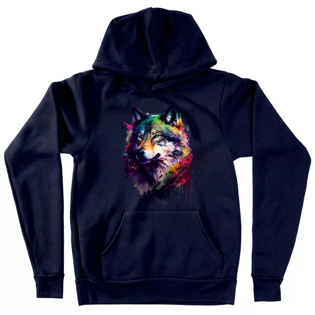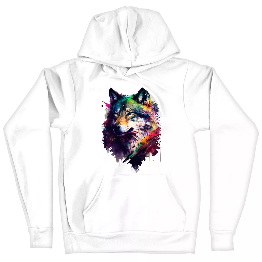 Colorful Wolf Hooded Sweatshirt – Cool Art Hoodie – Printed Hoodie