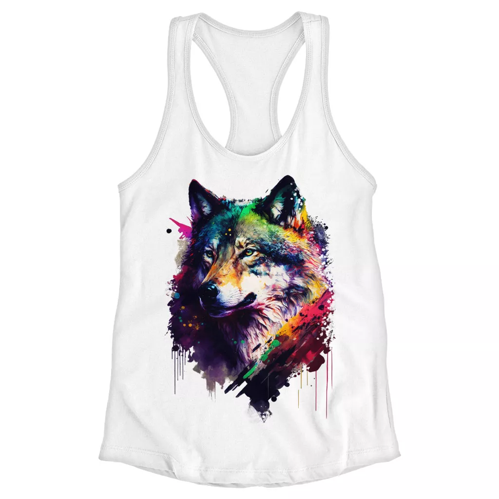 Colorful Wolf Racerback Tank – Cool Art Tank – Printed Workout Tank