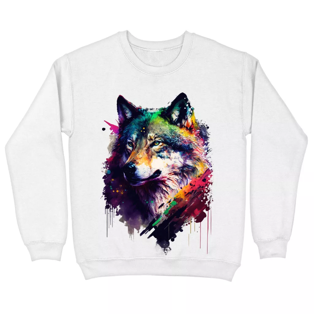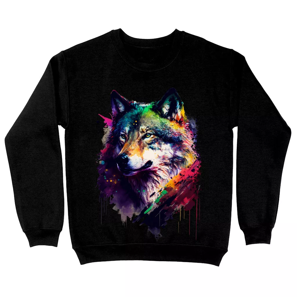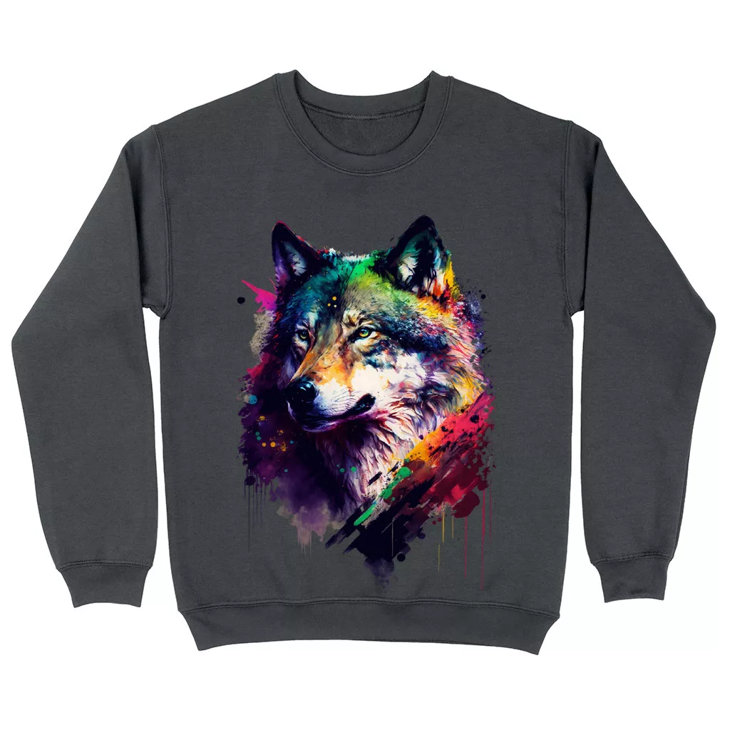 Colorful Wolf Sweatshirt – Cool Art Crewneck Sweatshirt – Printed Sweatshirt