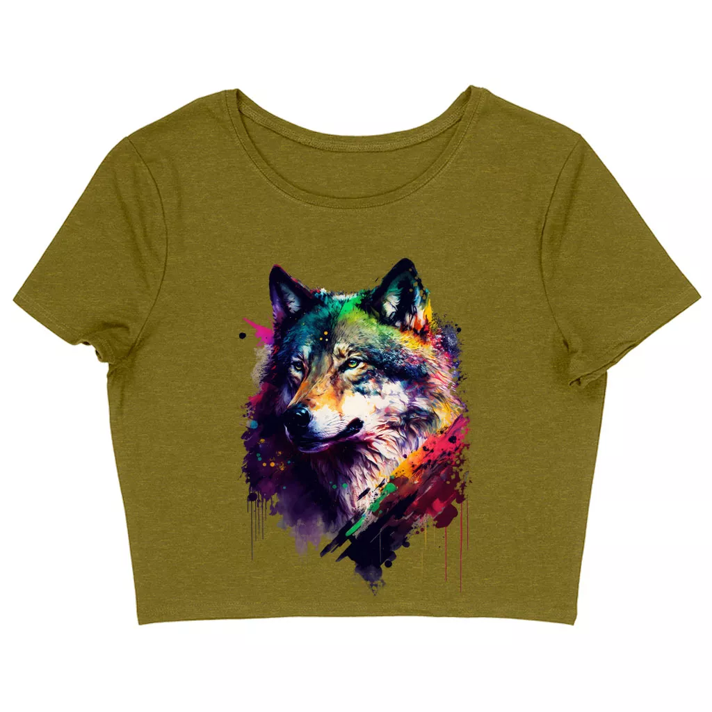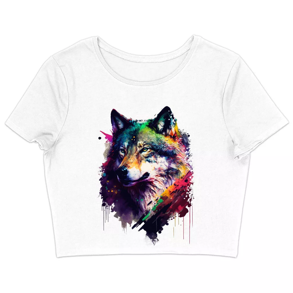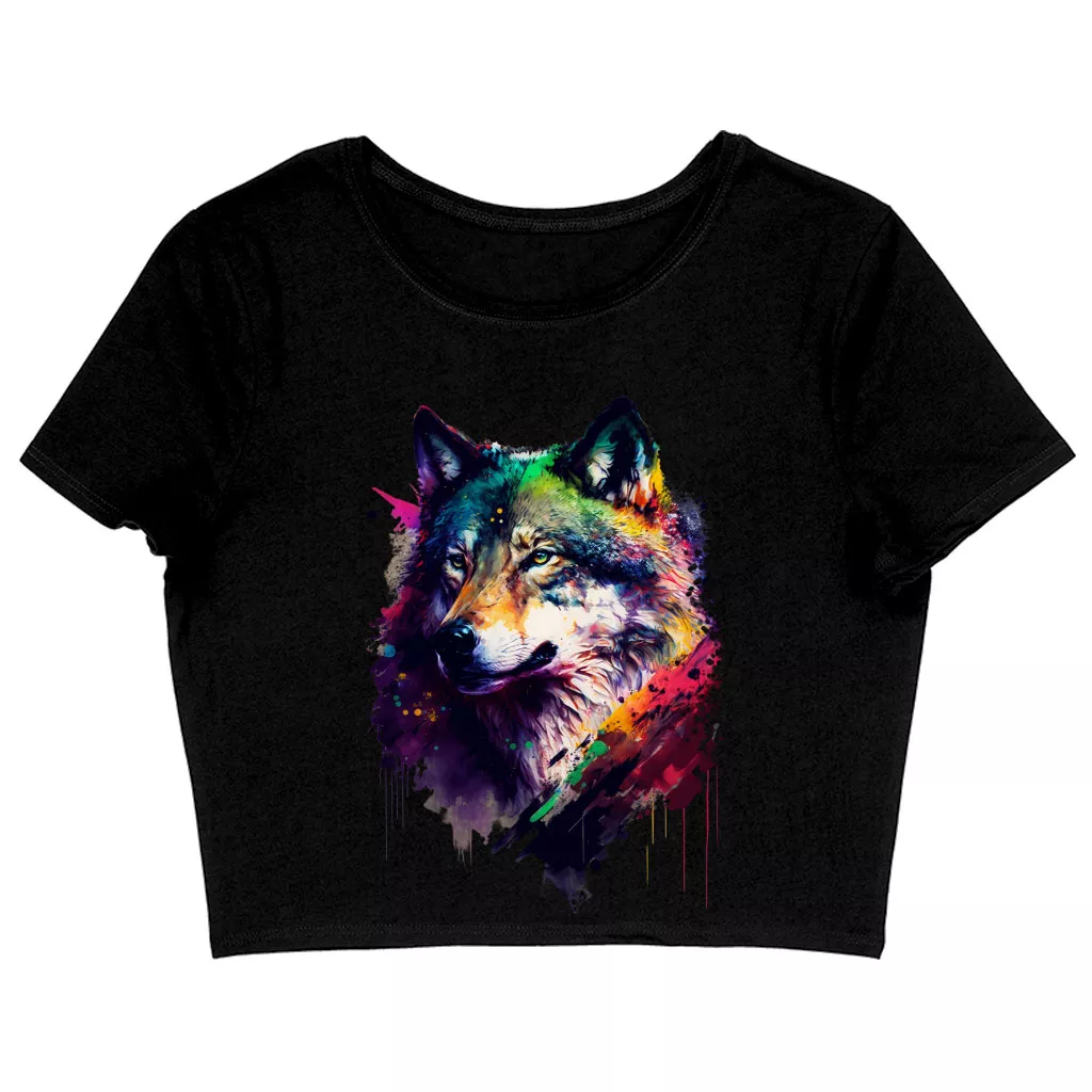 Colorful Wolf Women’s Cropped T-Shirt – Cool Art Crop Top – Printed Cropped Tee