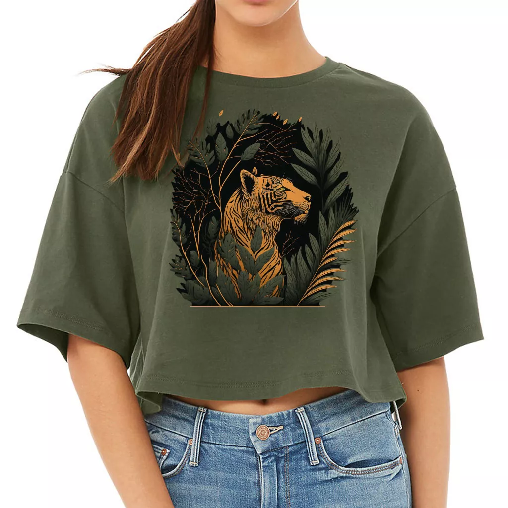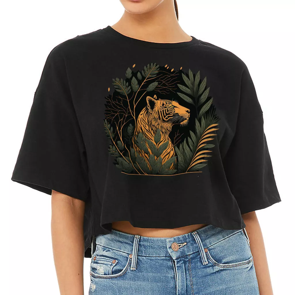 Cool Tiger Women’s Crop Tee Shirt – Animal Design Cropped T-Shirt – Graphic Crop Top