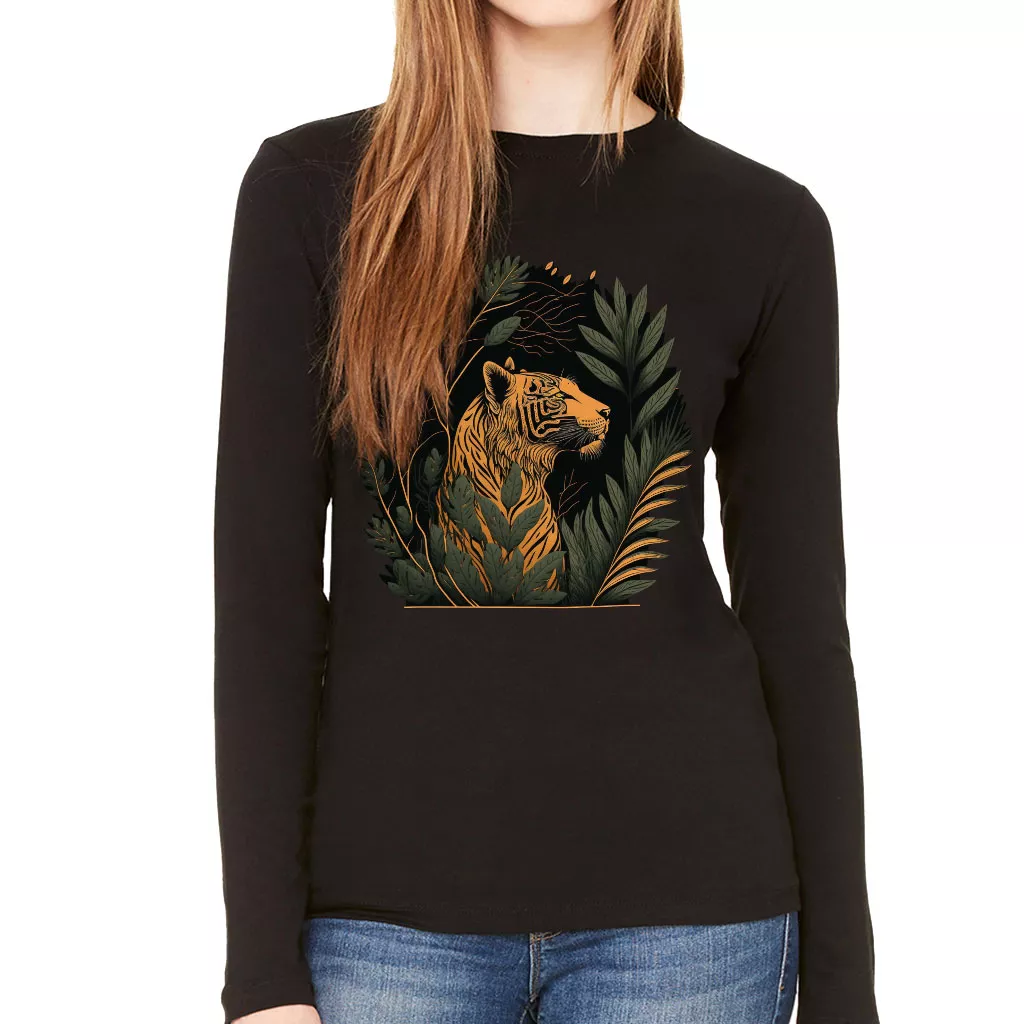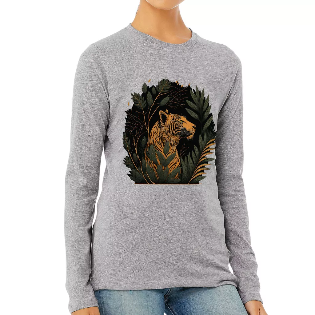Cool Tiger Women’s Long Sleeve T-Shirt – Animal Design Long Sleeve Tee – Graphic T-Shirt