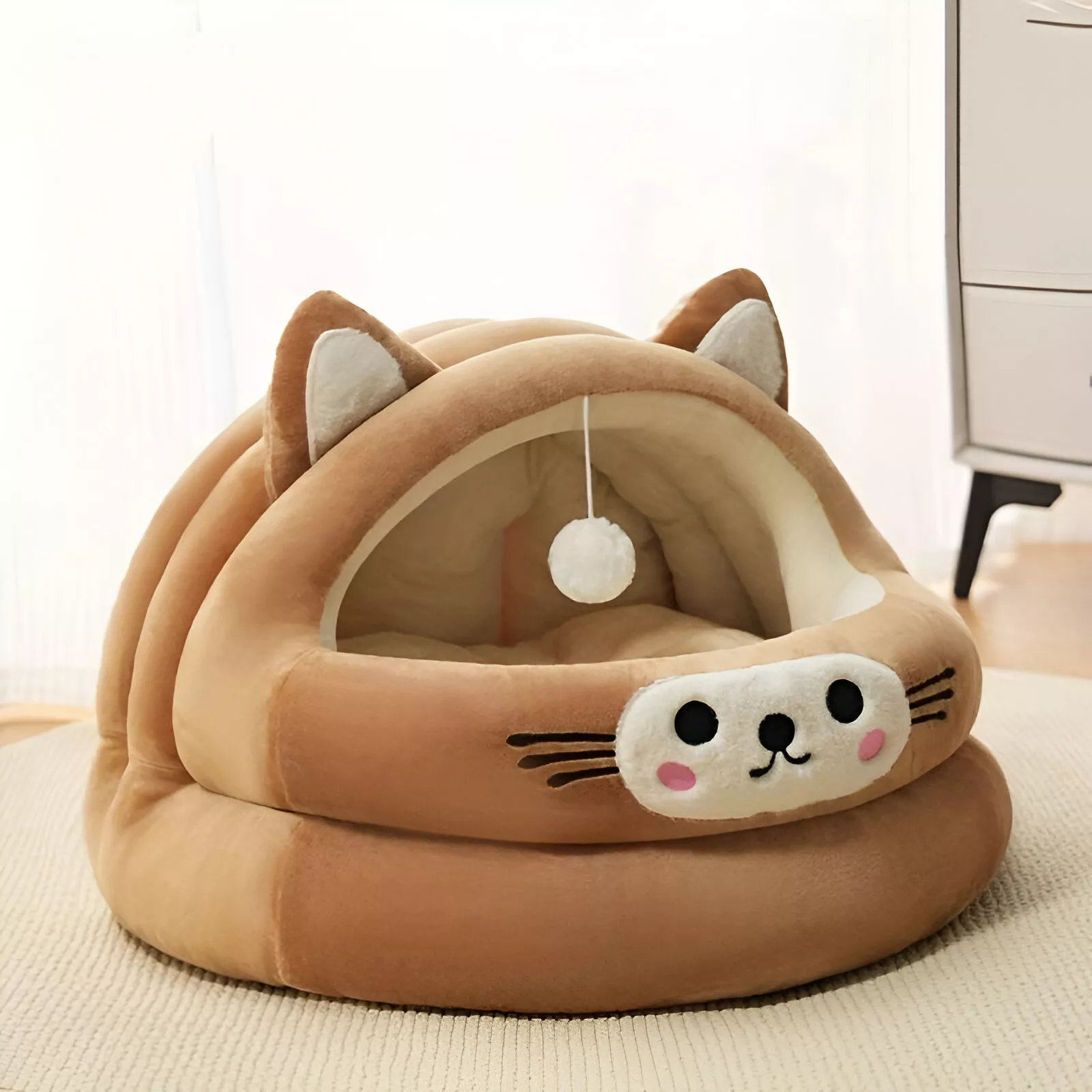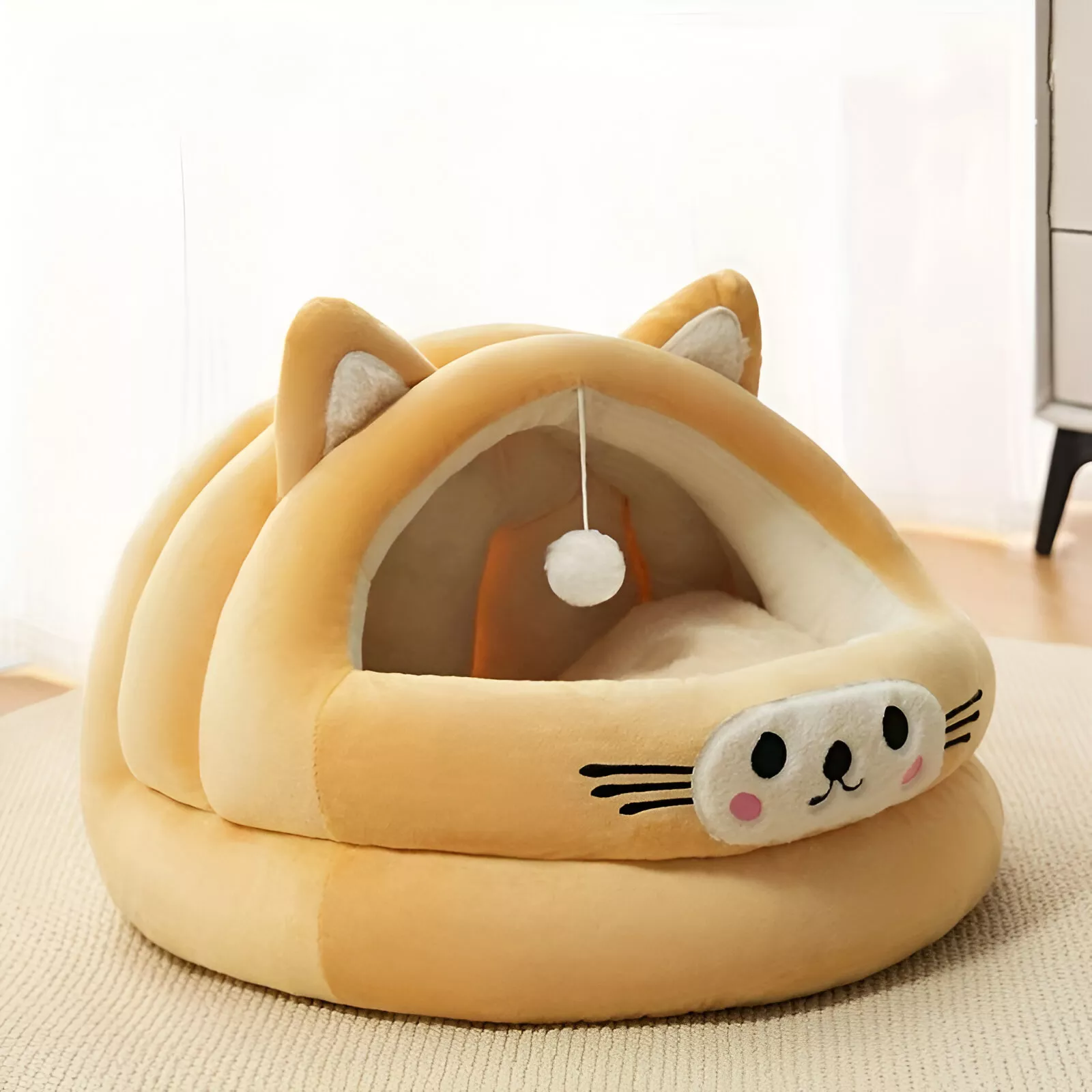 Unlike ordinary pet beds, this semi-enclosed nest combines comfort, durability, and charm in one. It’s specifically designed to keep your cat warm during colder months while staying breathable for year-round use. Your cat will love curling up in this snug space, and you’ll love how it fits seamlessly into your home.
