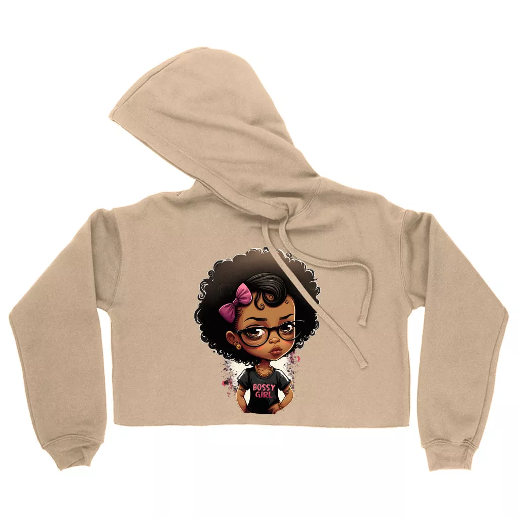Cute Anime Black Girl Women’s Cropped Hoodie – Graphic Cropped Hoodie – Cartoon Hooded Sweatshirt