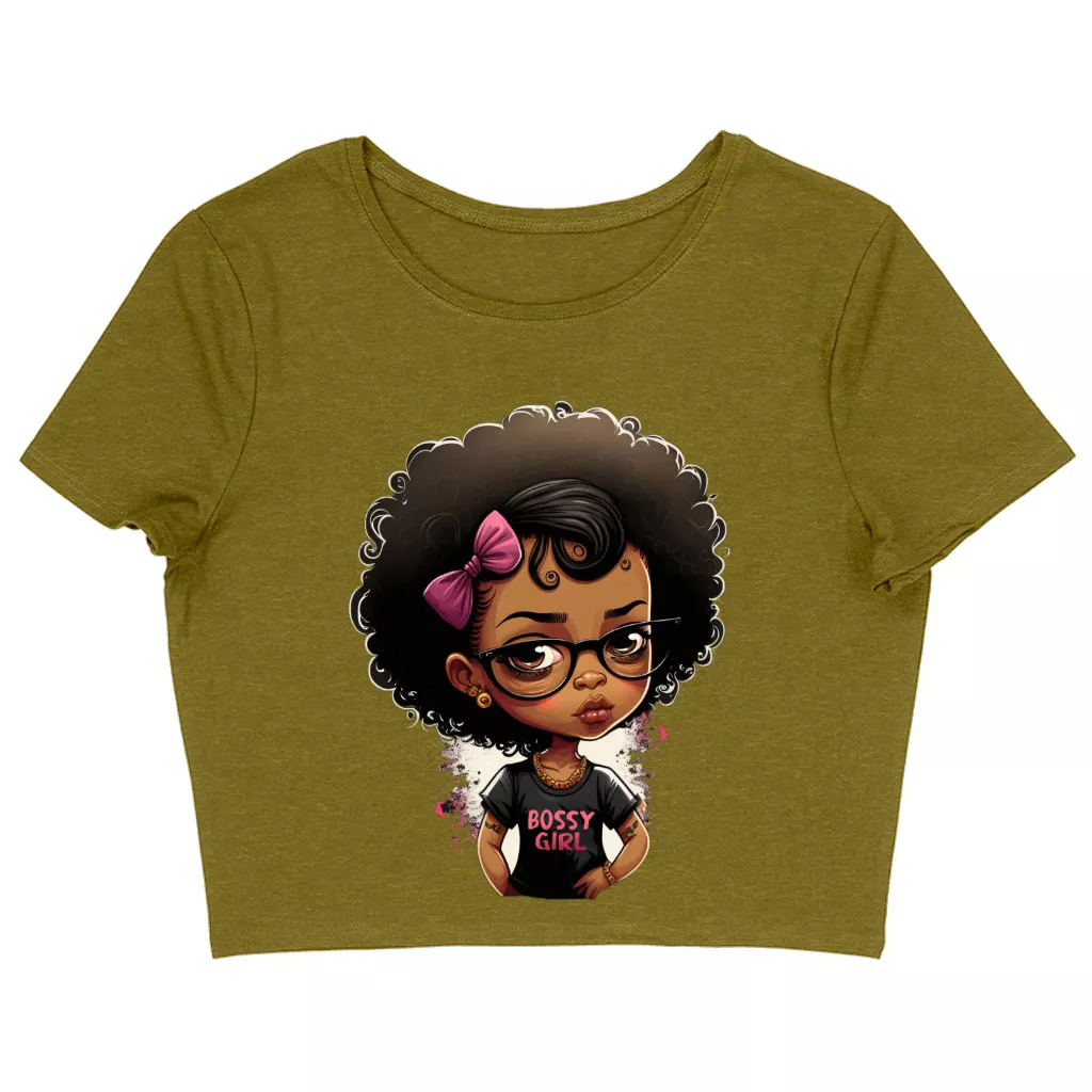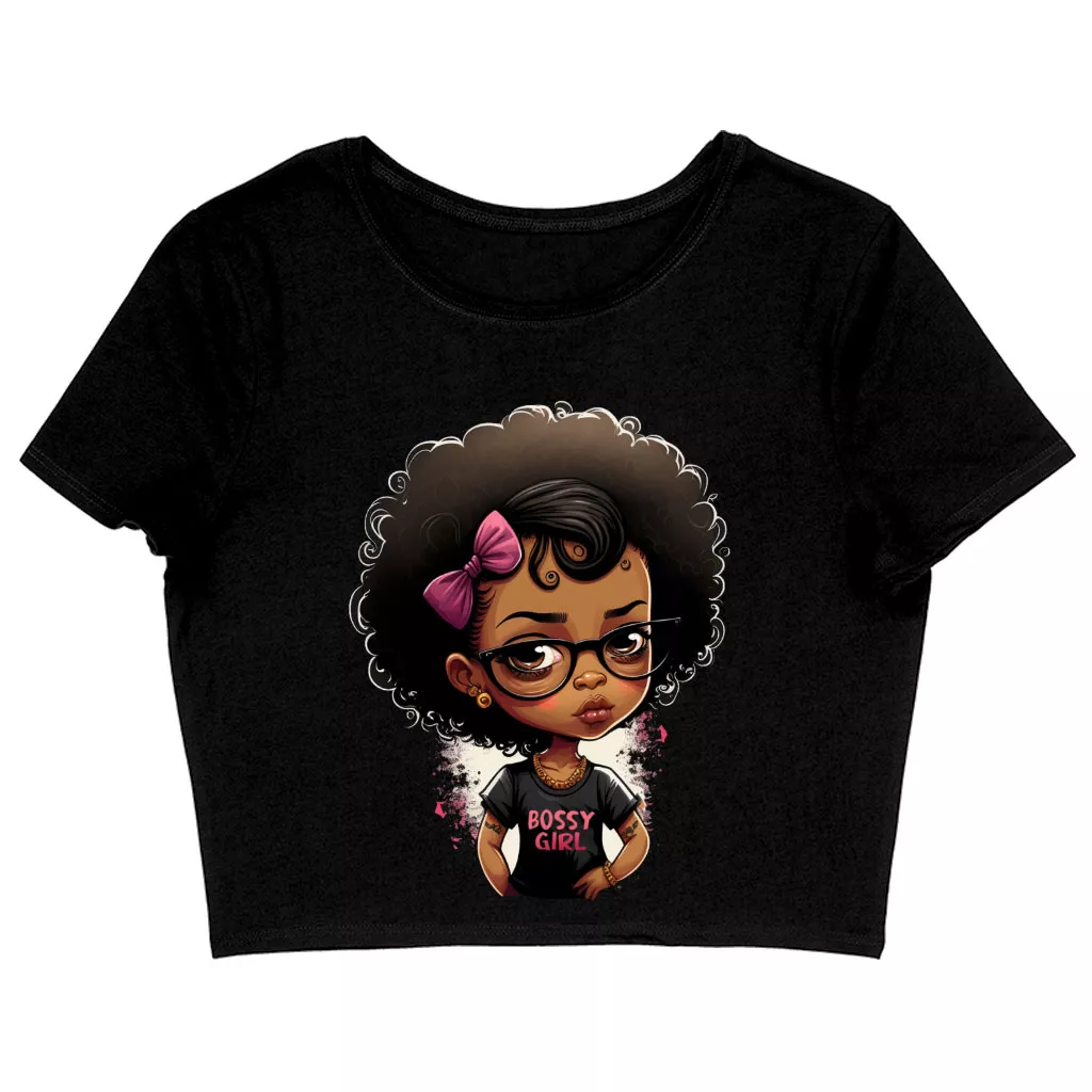 Cute Anime Black Girl Women’s Cropped T-Shirt – Graphic Crop Top – Cartoon Crop Tee Shirt