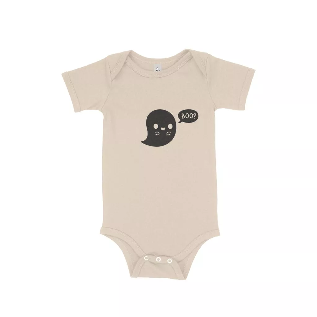 Cute Ghost Baby Jersey One-Piece is no ordinary piece of clothing. Its envelope neckline provides flexible fitting while a three-snap leg closure provides for easy changing.
