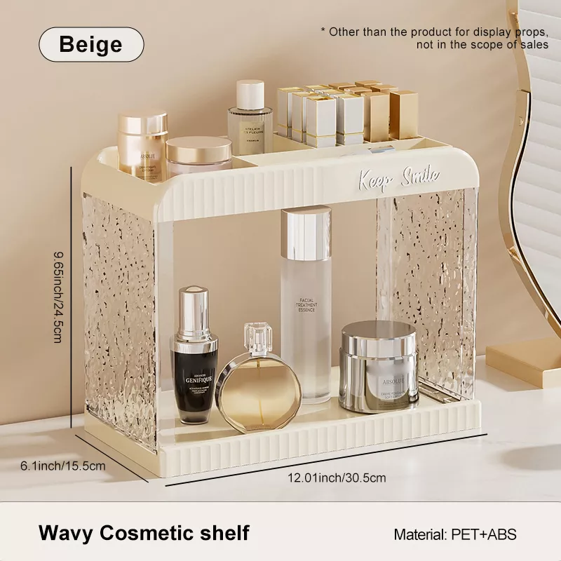 - Space-Saving Design: The double-tray design offers two levels of storage, providing ample space for makeup, skincare items, and perfumes without taking up much counter space.