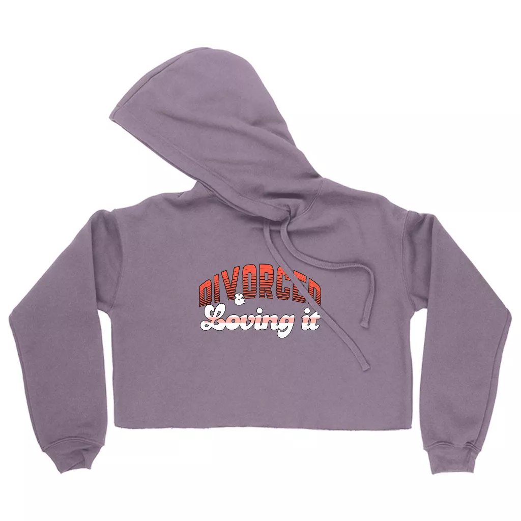 Divorced Women’s Cropped Hoodie – Funny Saying Cropped Hoodie – Printed Hooded Sweatshirt
