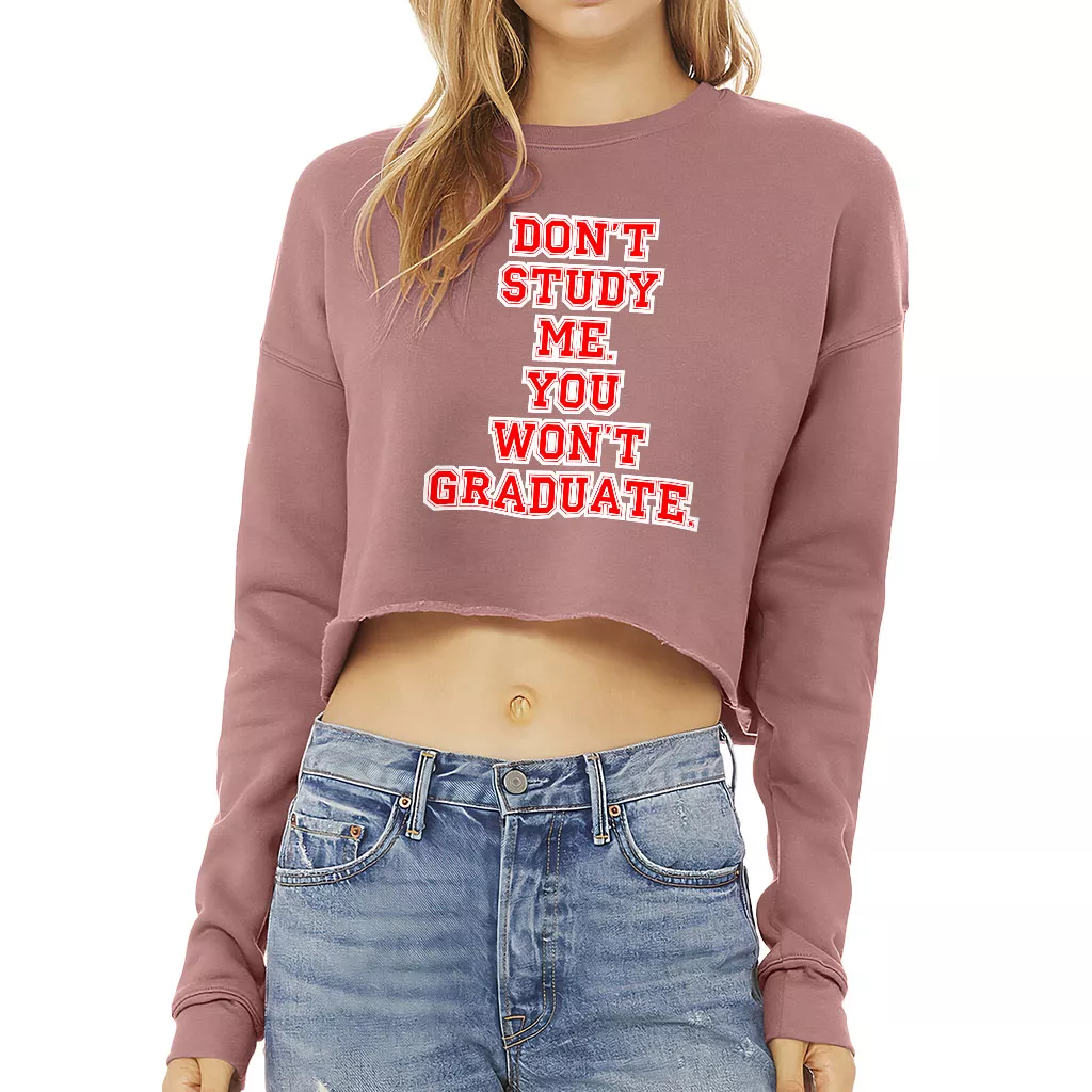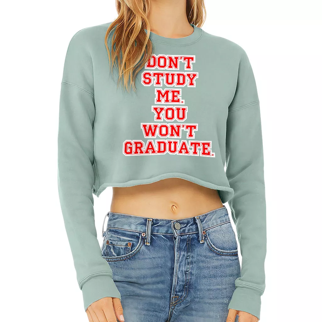 Don’t Study Me You Won’t Graduate Cropped Sweatshirt – Funny Quote Women’s Sweatshirt – Printed Crop Crew Sweatshirt