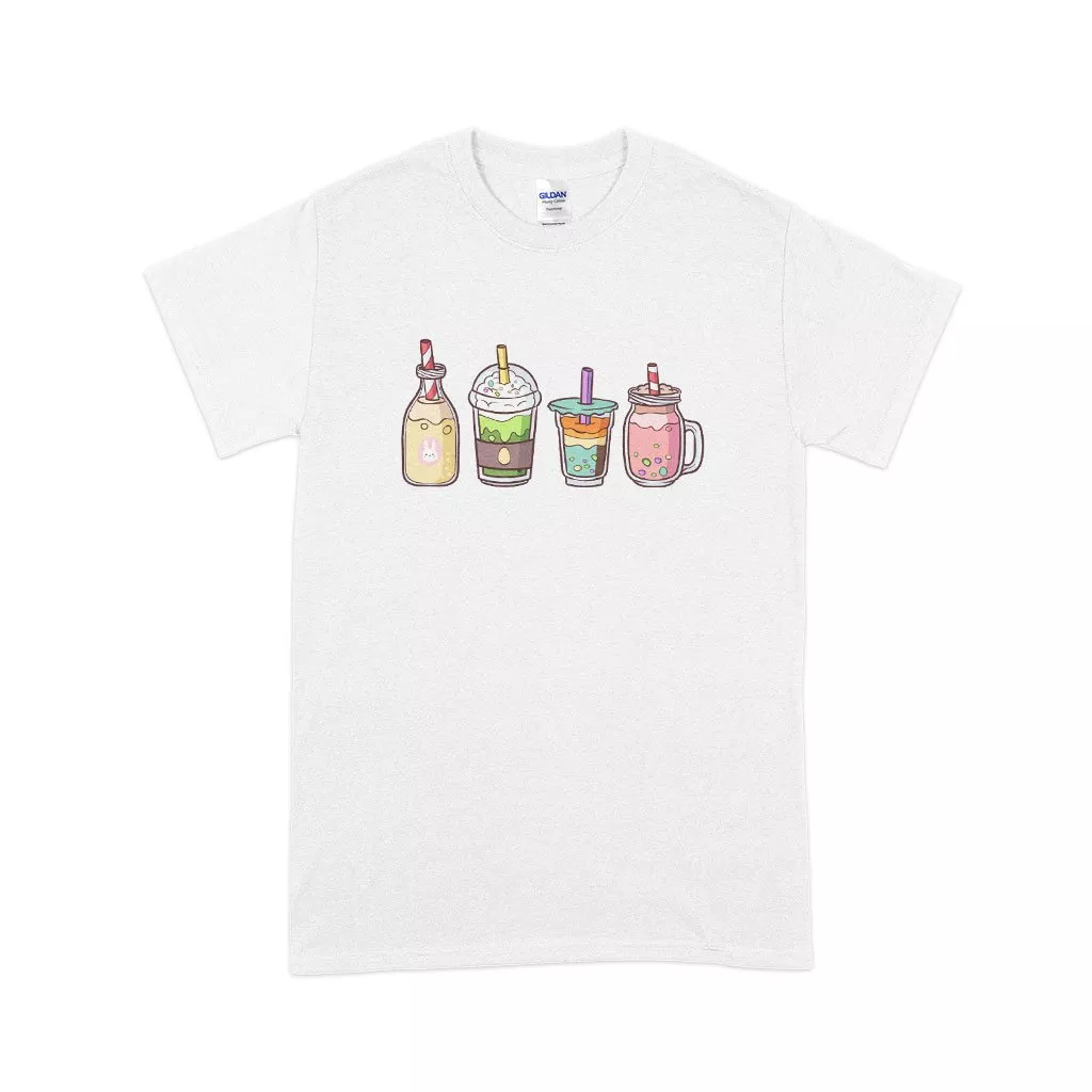 taped neck and shoulders, double-needle sleeve and bottom hems, and
