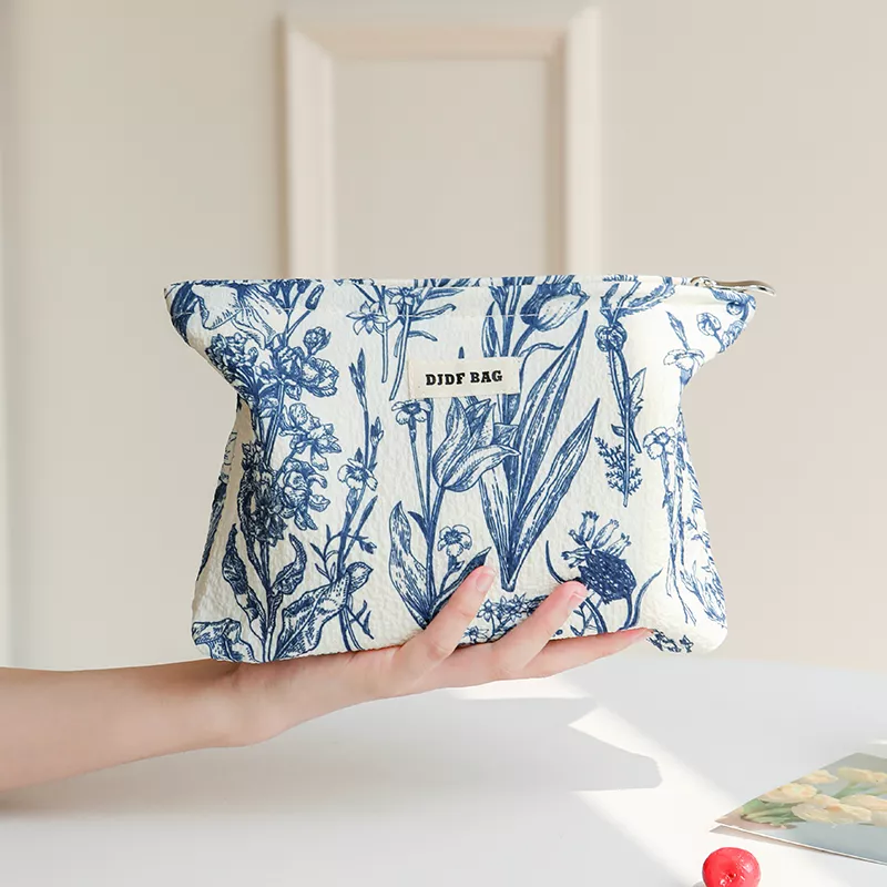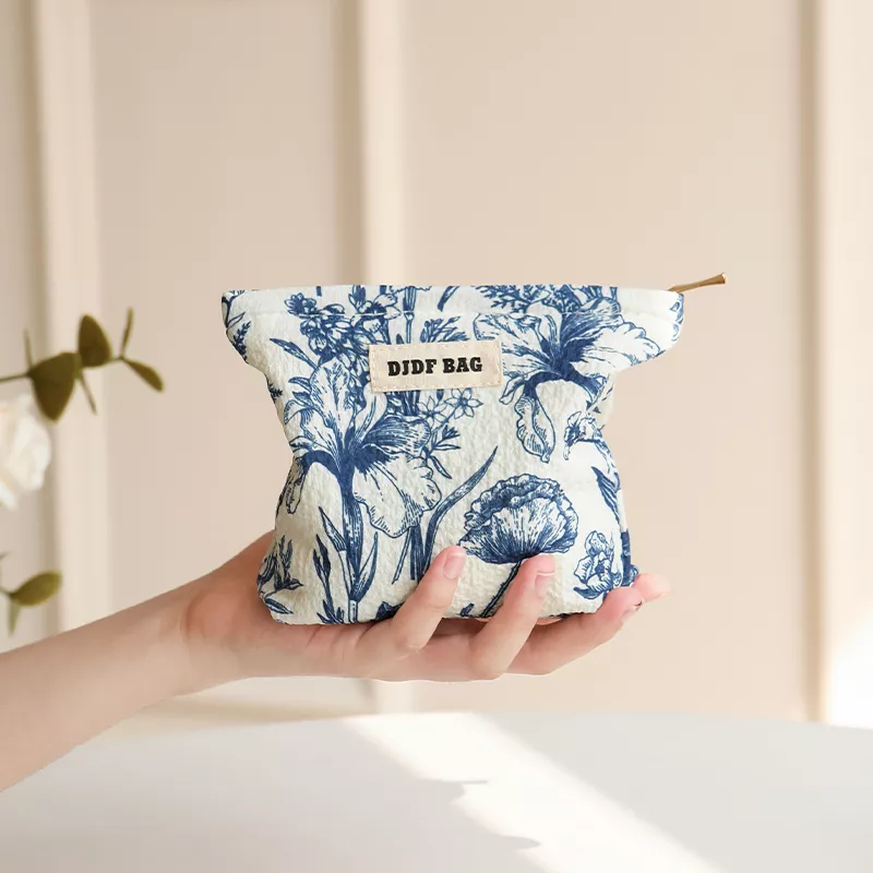 Upgrade your travel essentials with this elegant blue and white floral cosmetic bag. Inspired by timeless porcelain painting styles, this small but spacious toiletry bag brings together sophistication and practicality. Its compact pillow-shaped design is perfect for carrying your makeup and toiletries in style, whether you’re on a quick weekend getaway or managing your everyday essentials. The high-quality polyester material ensures durability and easy maintenance, making it an ideal choice for the modern, on-the-go woman.