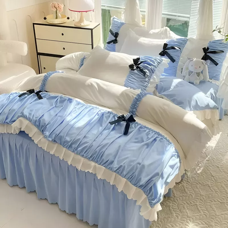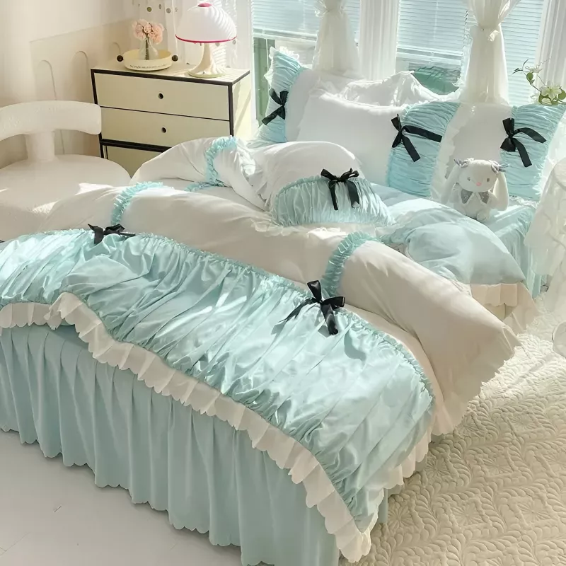 - Luxurious Lace Design – The soft bow lace on the duvet cover and bed skirt brings a touch of delicate elegance to your room, creating a soft, romantic ambiance.