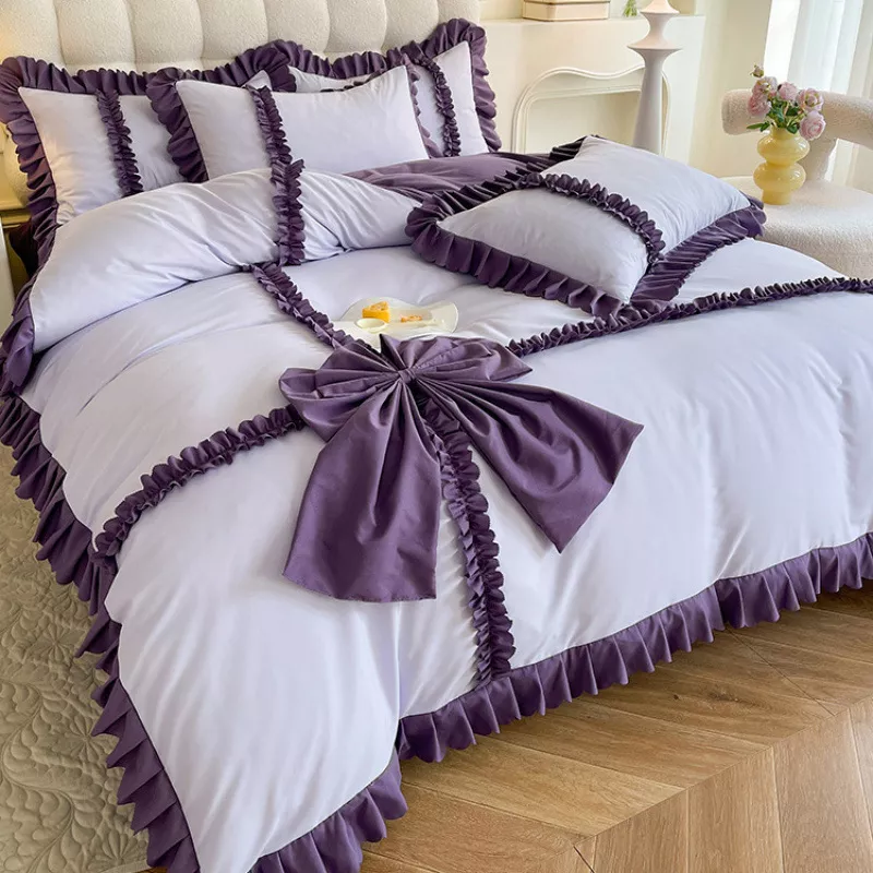 Imagine slipping into bed each night surrounded by soft, plush fabric, with the delicate bow lace details adding a touch of charm to your bedroom. This luxurious 4-piece bedding set is perfect for those who want to create a peaceful, sophisticated space with a whimsical, princess-inspired feel. The combination of high-quality cotton and beautiful lace details ensures that this bedding is not only beautiful but comfortable too.