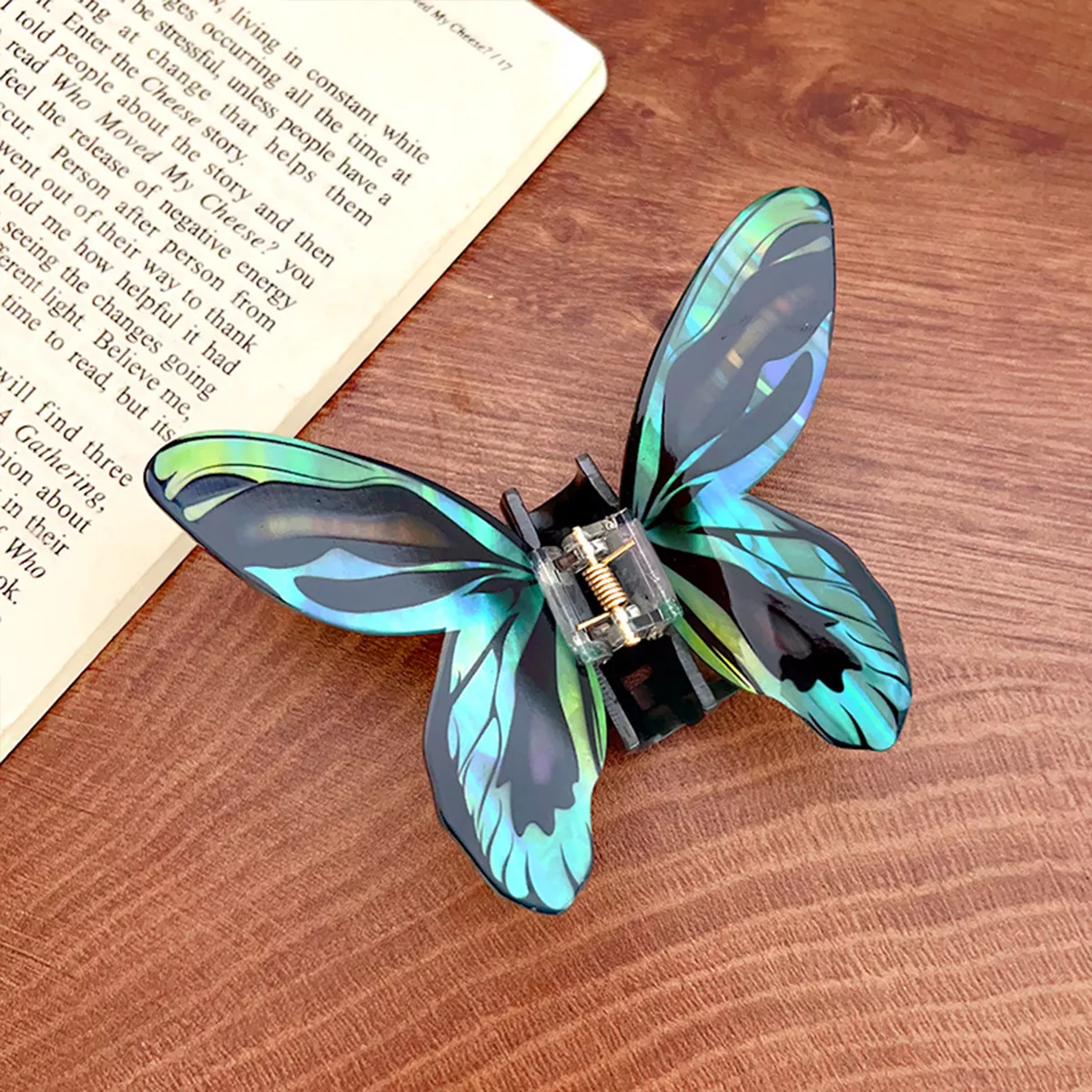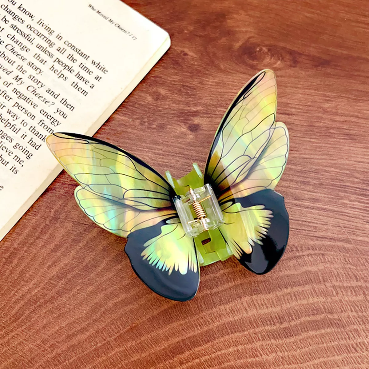 The clip features a unique simulated butterfly design, crafted from durable, high-quality polyester material. The secure grip ensures that your hair stays in place all day long, while the intricate details of the butterfly shape bring a sophisticated, yet playful vibe to your hair. Whether you are styling your hair into a chic updo, a simple ponytail, or letting your locks flow freely, this clip provides the perfect finishing touch to your look.