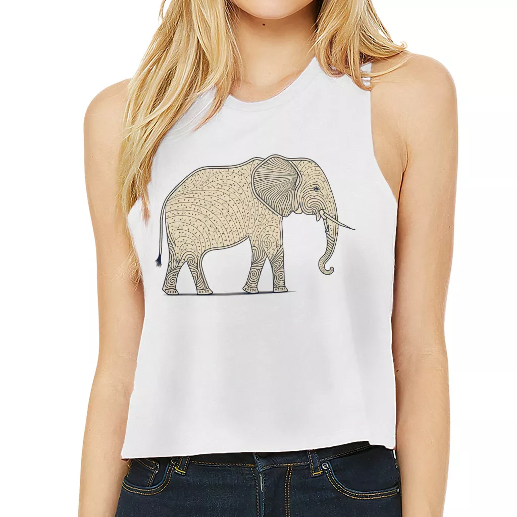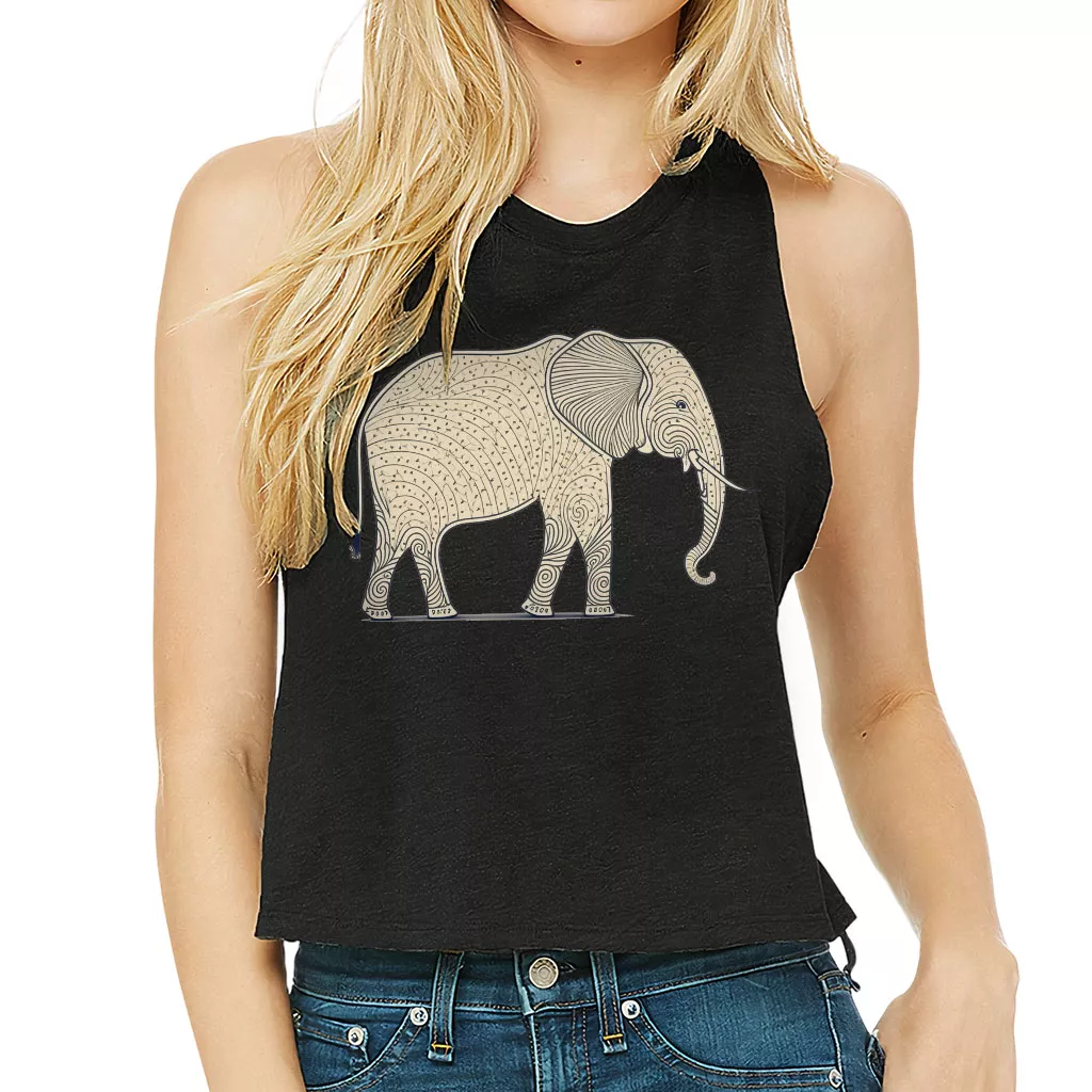 Elephant Graphic Racerback Cropped Tank – Safari Women’s Tank – Best Design Tank Top