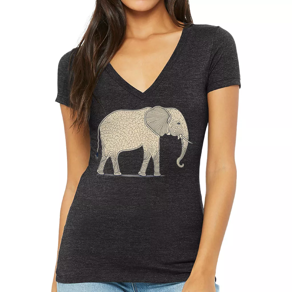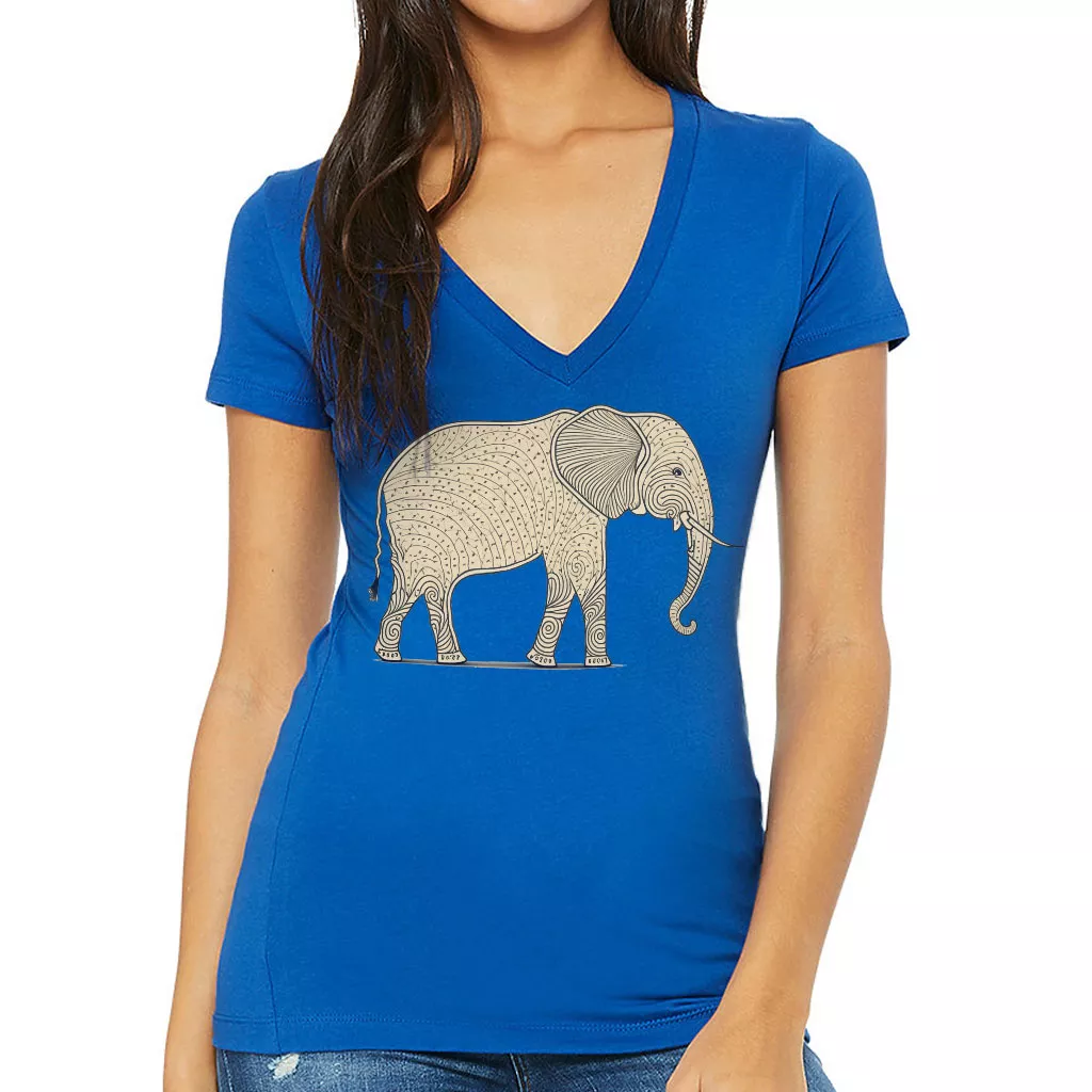 Elephant Graphic Women’s V-Neck T-Shirt – Safari V-Neck Tee – Best Design T-Shirt