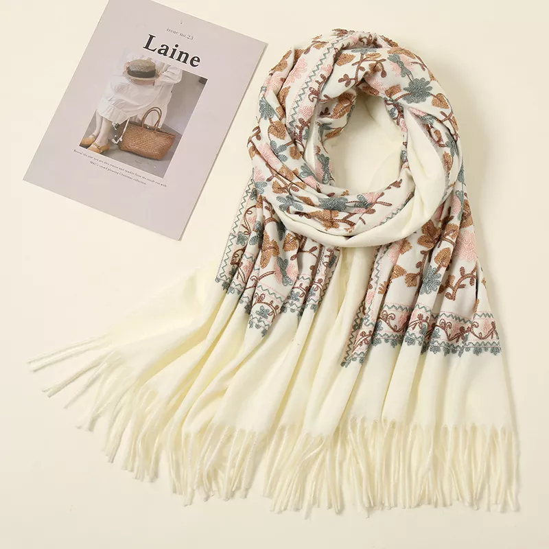 Looking for the ideal gift? This embroidered cashmere scarf is a thoughtful and stylish present that will keep your loved ones warm while adding a touch of luxury to their wardrobe. Its versatility and timeless appeal make it a perfect gift for birthdays, holidays, or any special occasion.