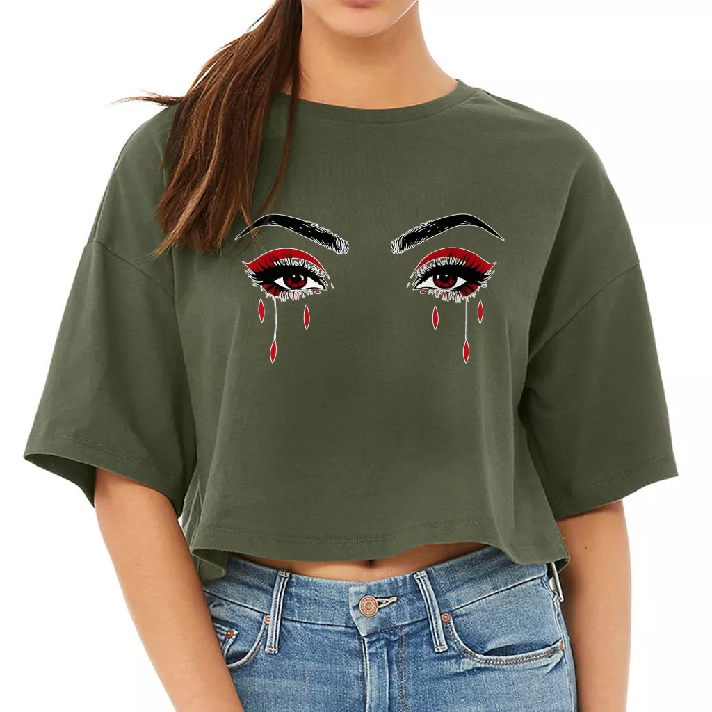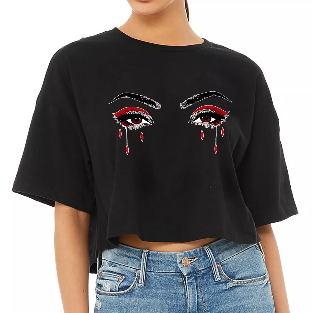 Eyes Design Women’s Crop Tee Shirt – Best Design Cropped T-Shirt – Themed Crop Top