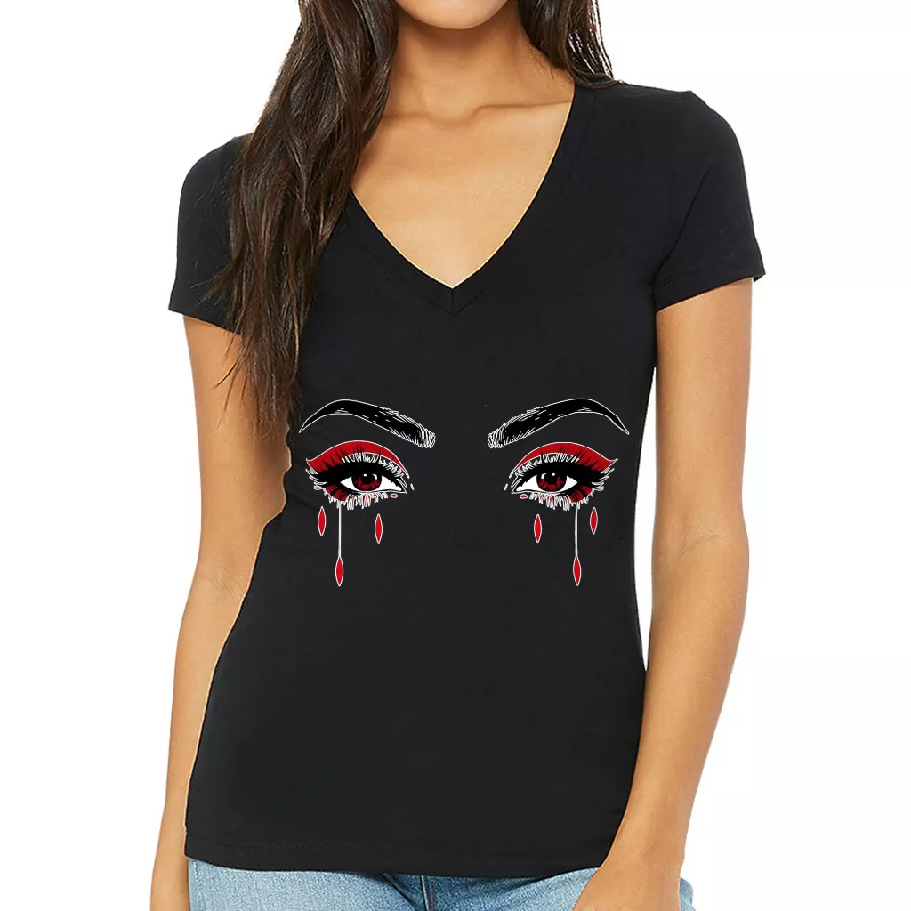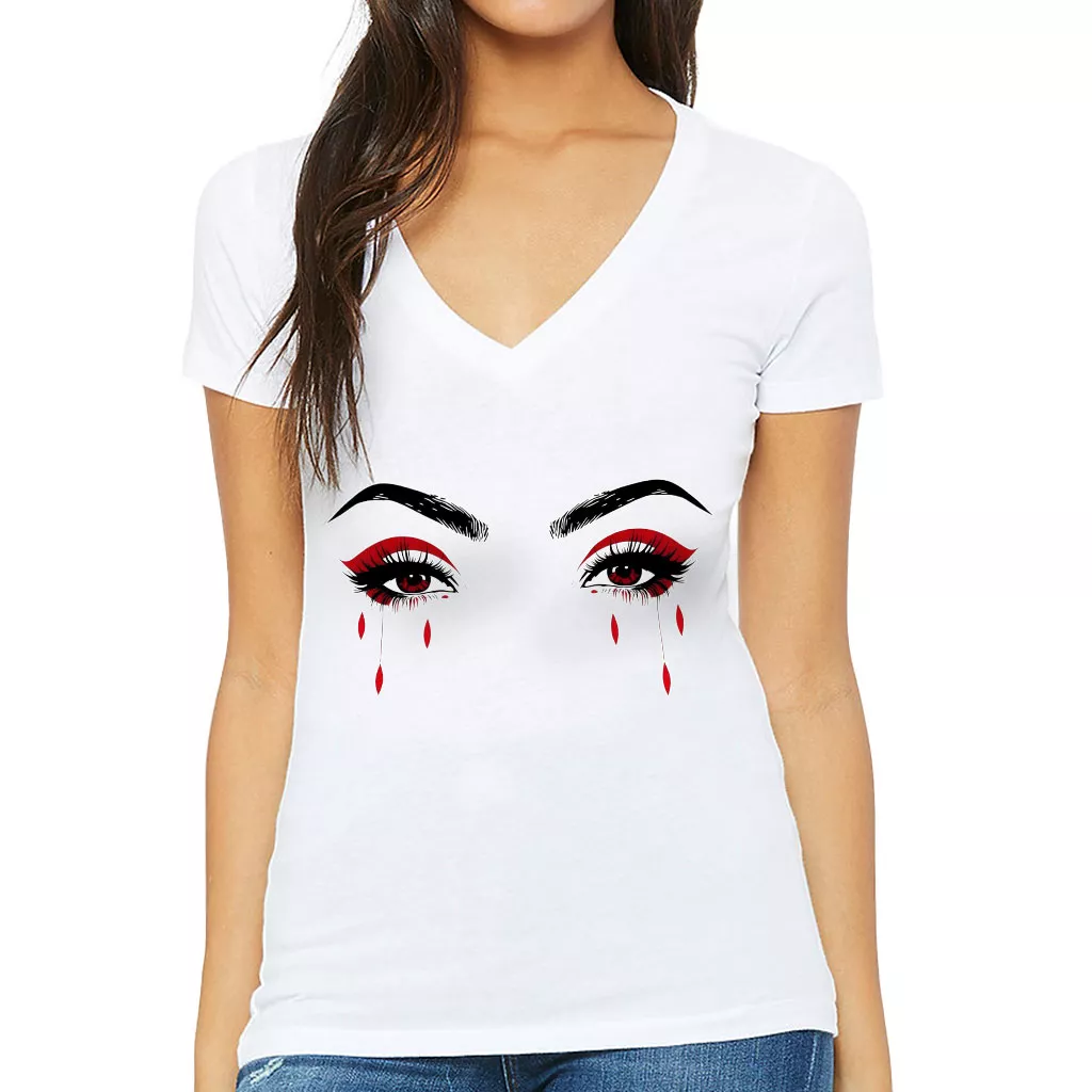 Eyes Design Women’s V-Neck T-Shirt – Best Design V-Neck Tee – Themed T-Shirt