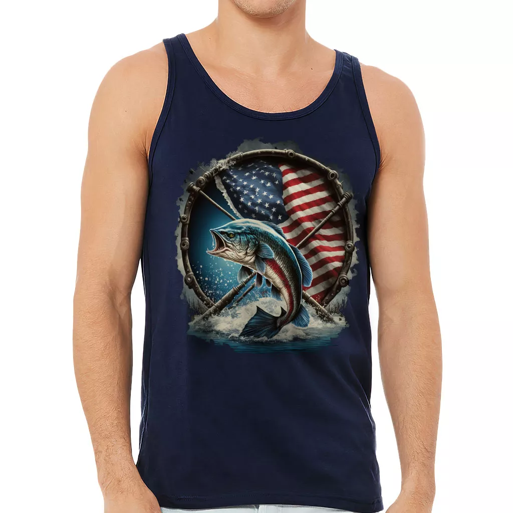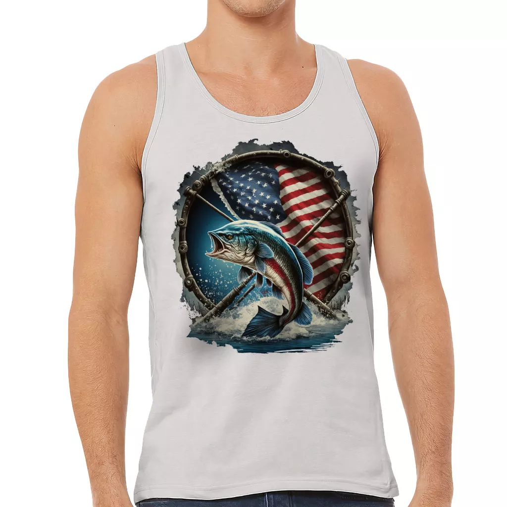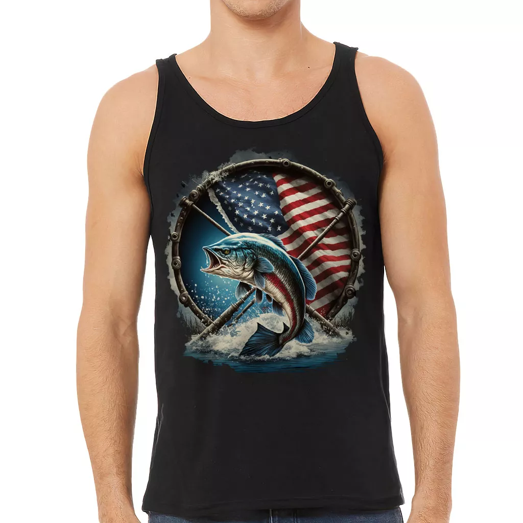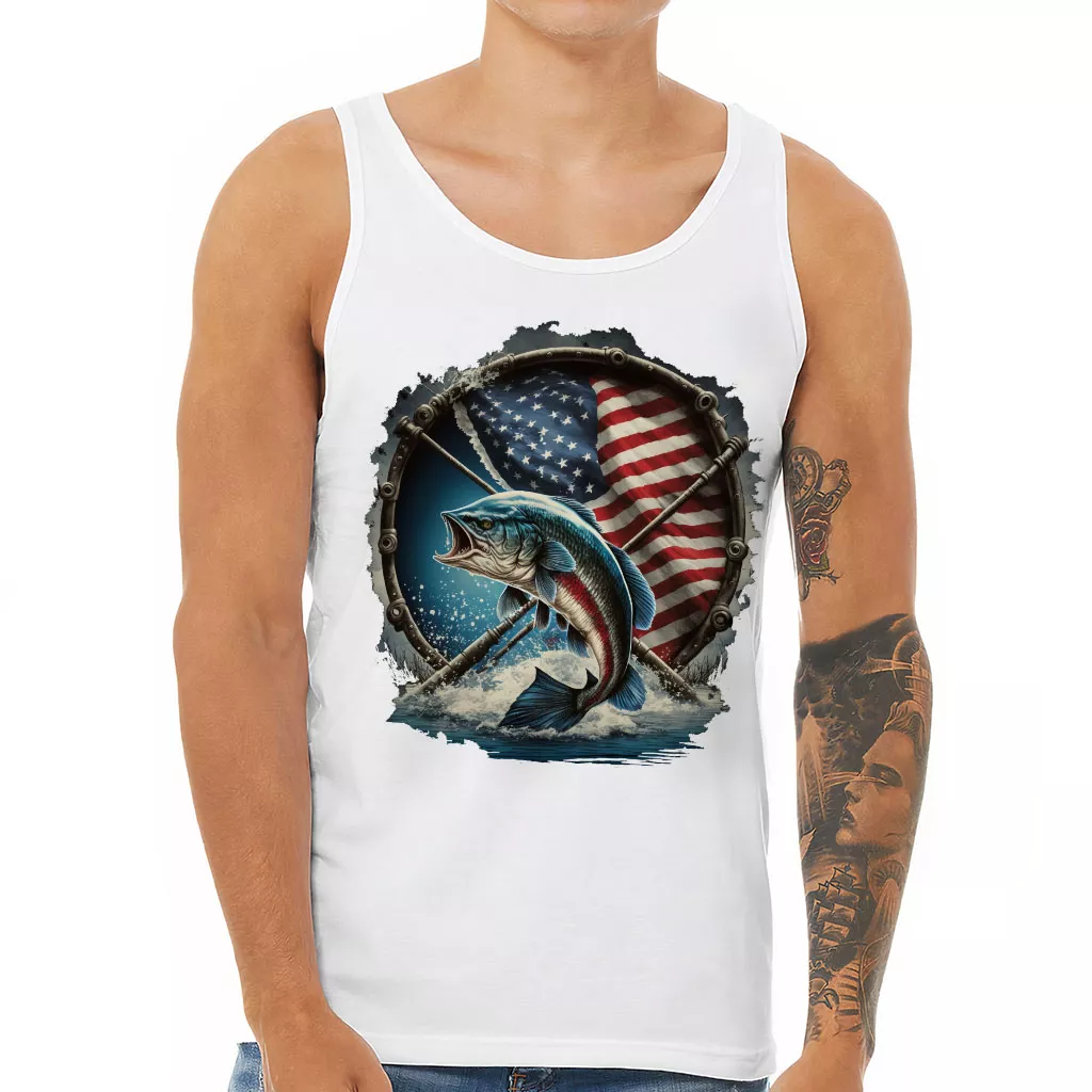 Flag Behind Bass Fishing Tank – Patriotic Workout Tank – Cool Jersey Tank
