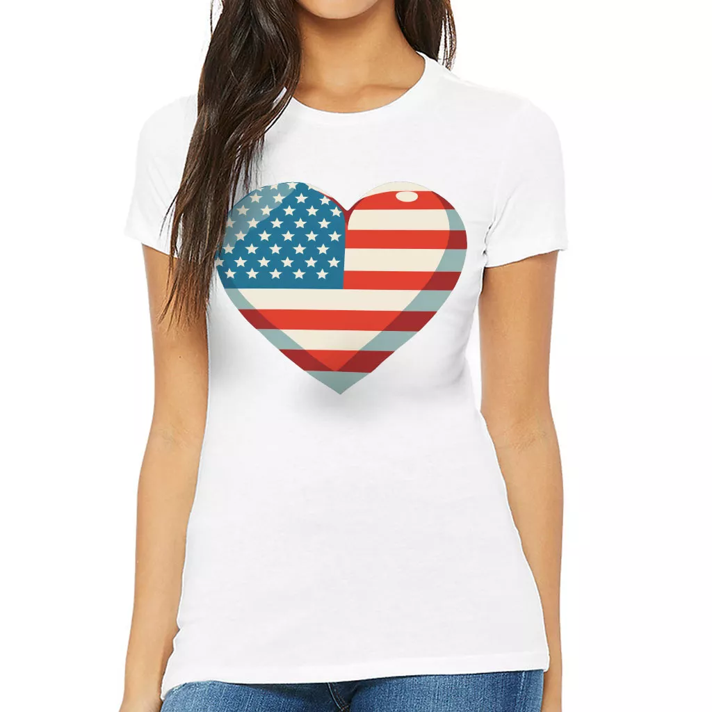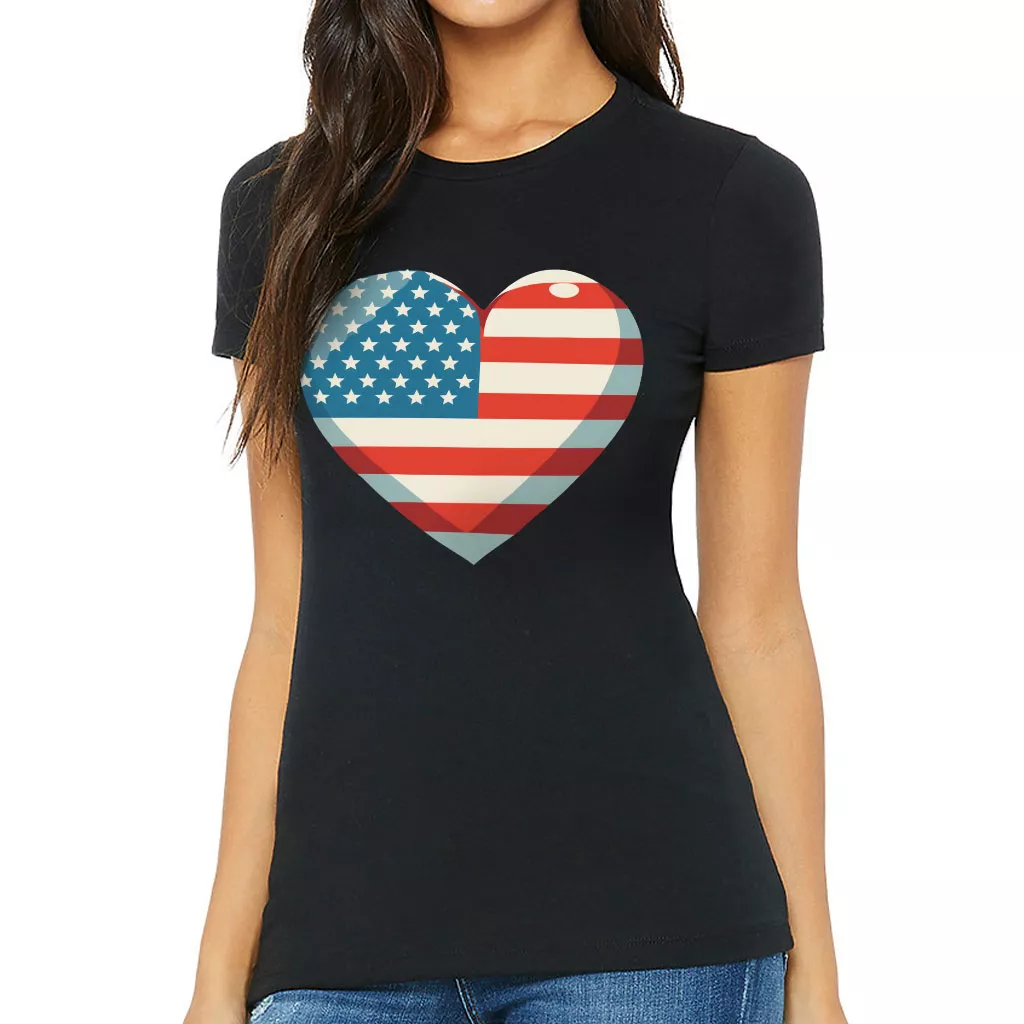 Flag Heart Slim Fit T-Shirt – USA Flag Women’s T-Shirt – Patriotic Slim Fit Tee