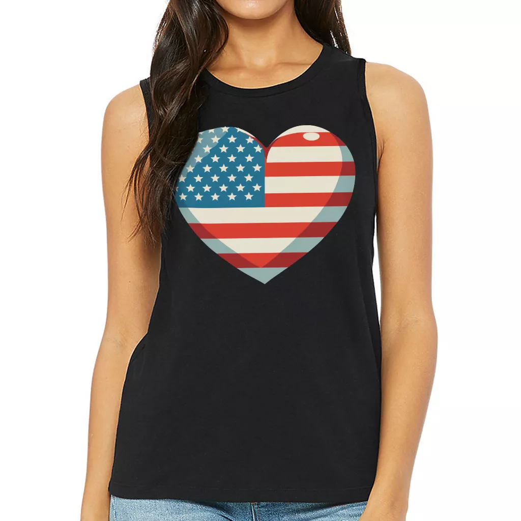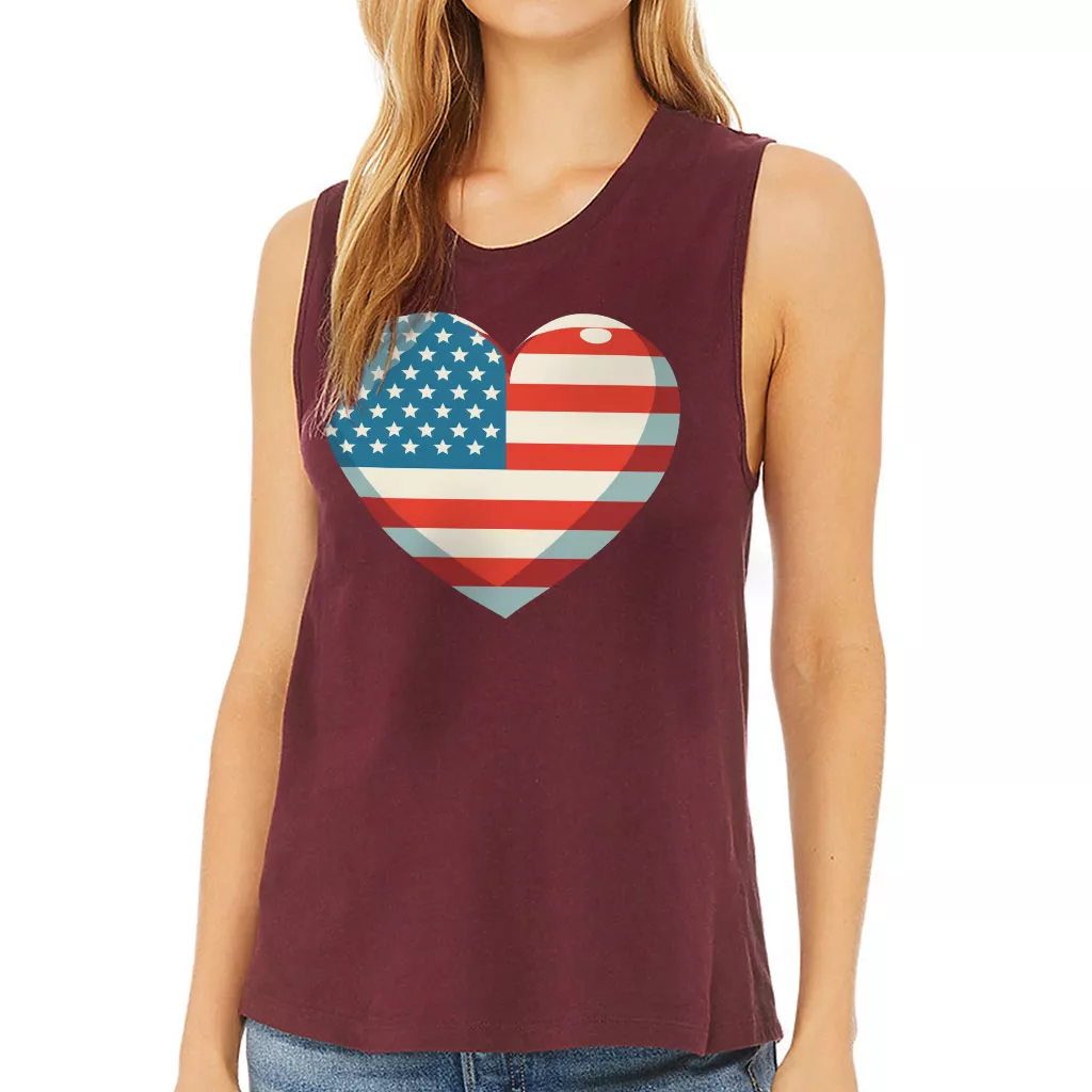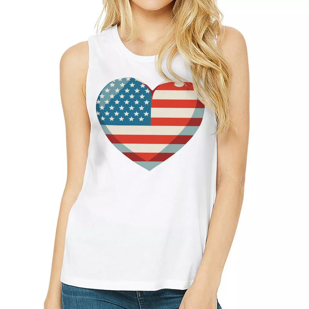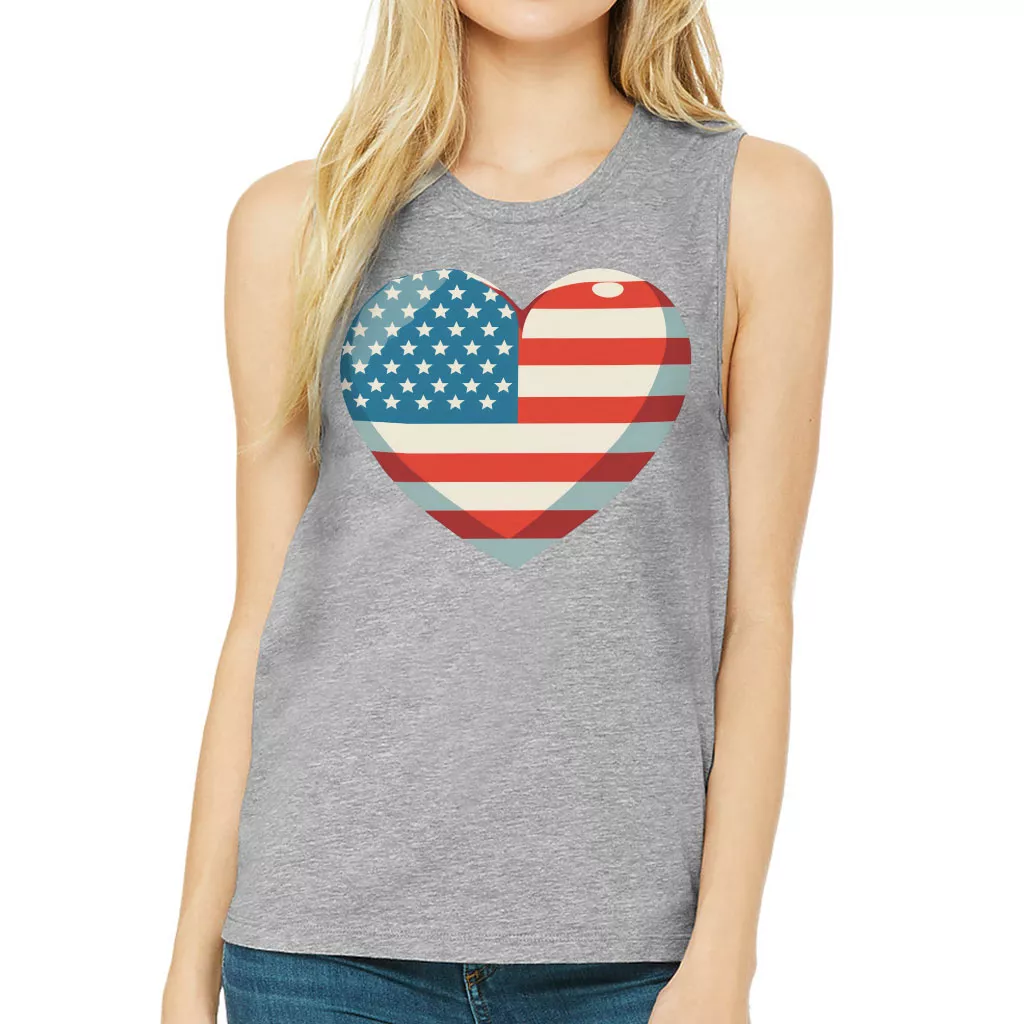 Flag Heart Women’s Muscle Tank – USA Flag Tank Top – Patriotic Workout Tank