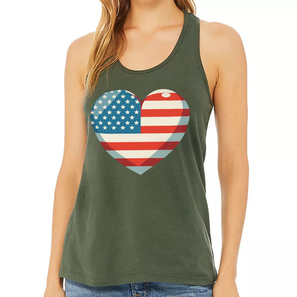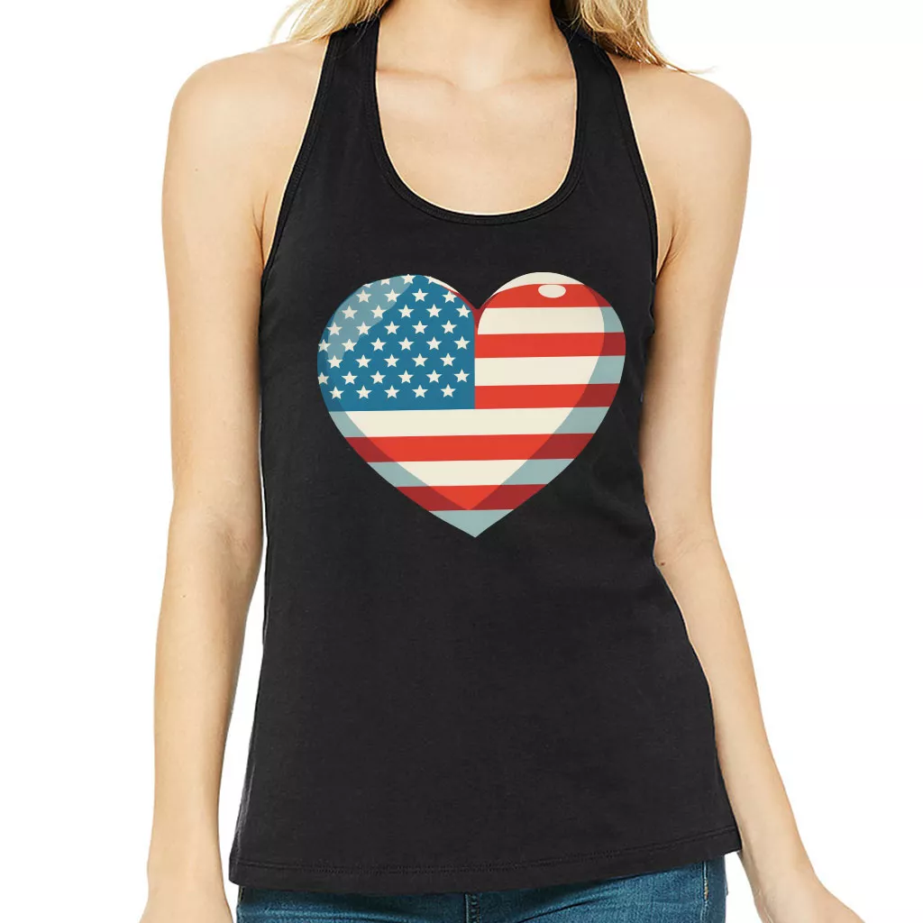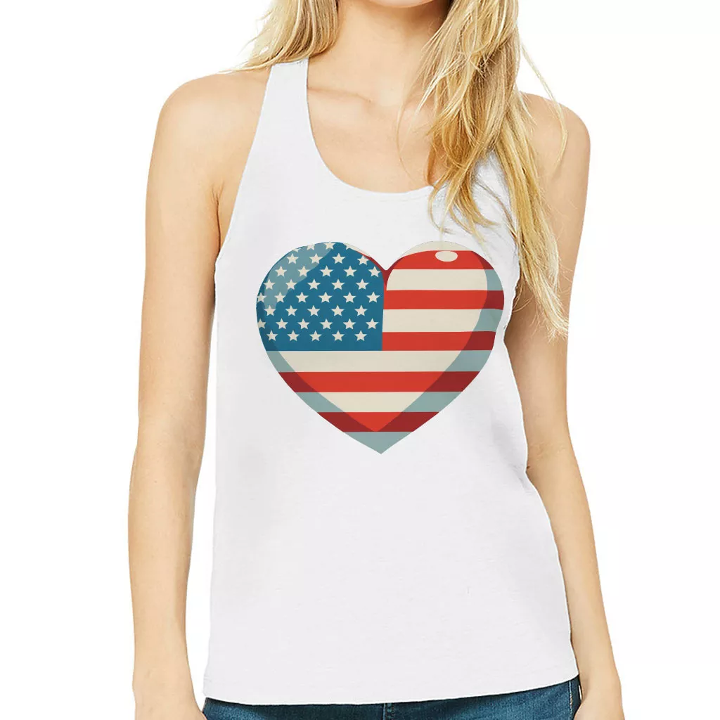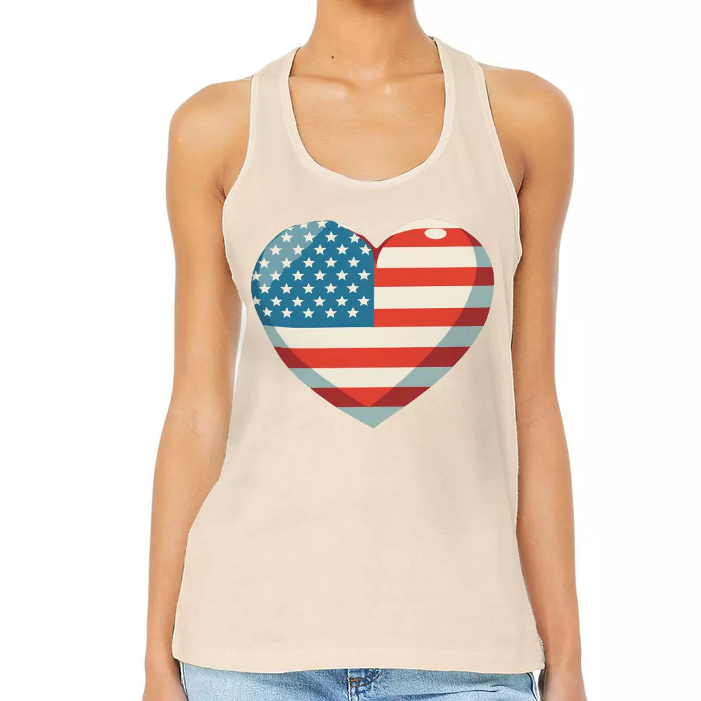 Flag Heart Women’s Racerback Tank – USA Flag Tank Top – Patriotic Workout Tank