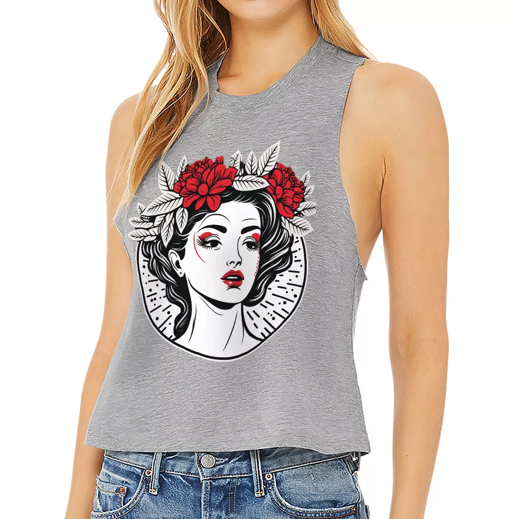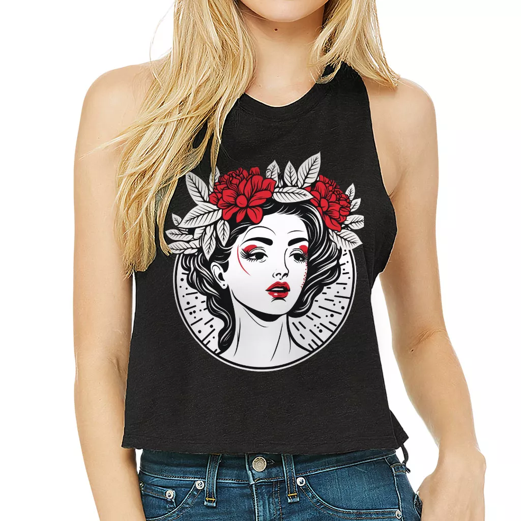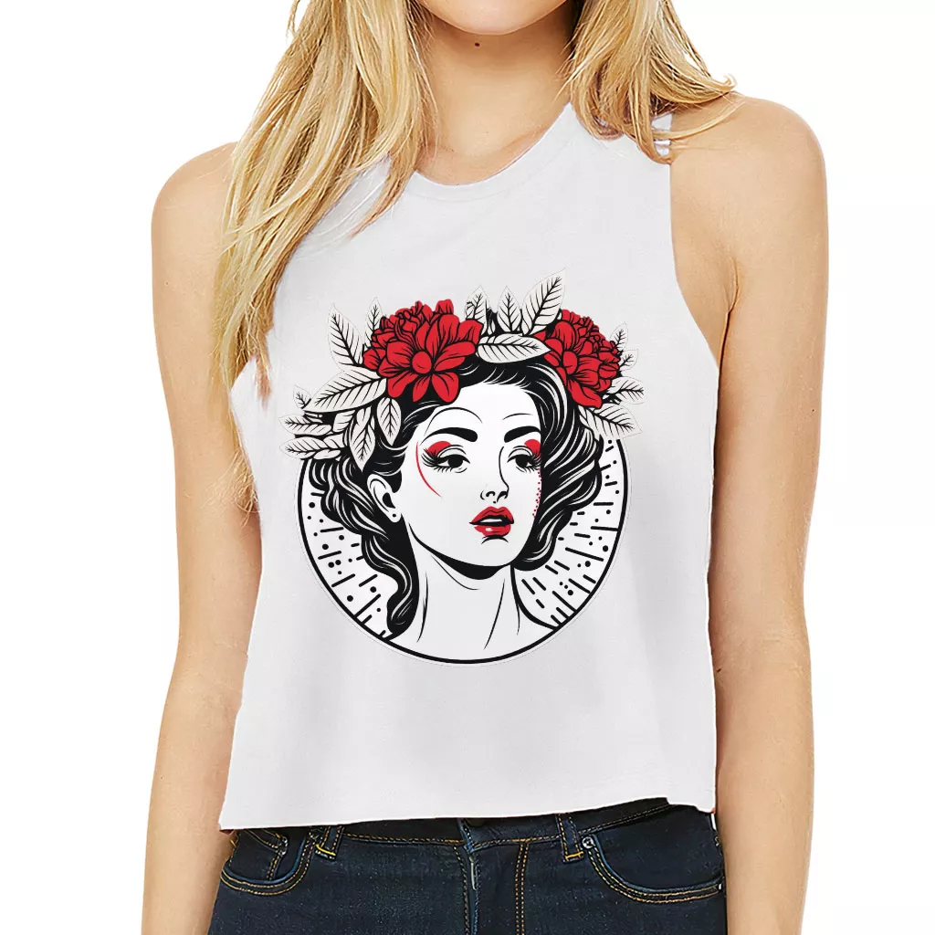 Floral Design Racerback Cropped Tank – Cool Graphic Women’s Tank – Illustration Tank Top