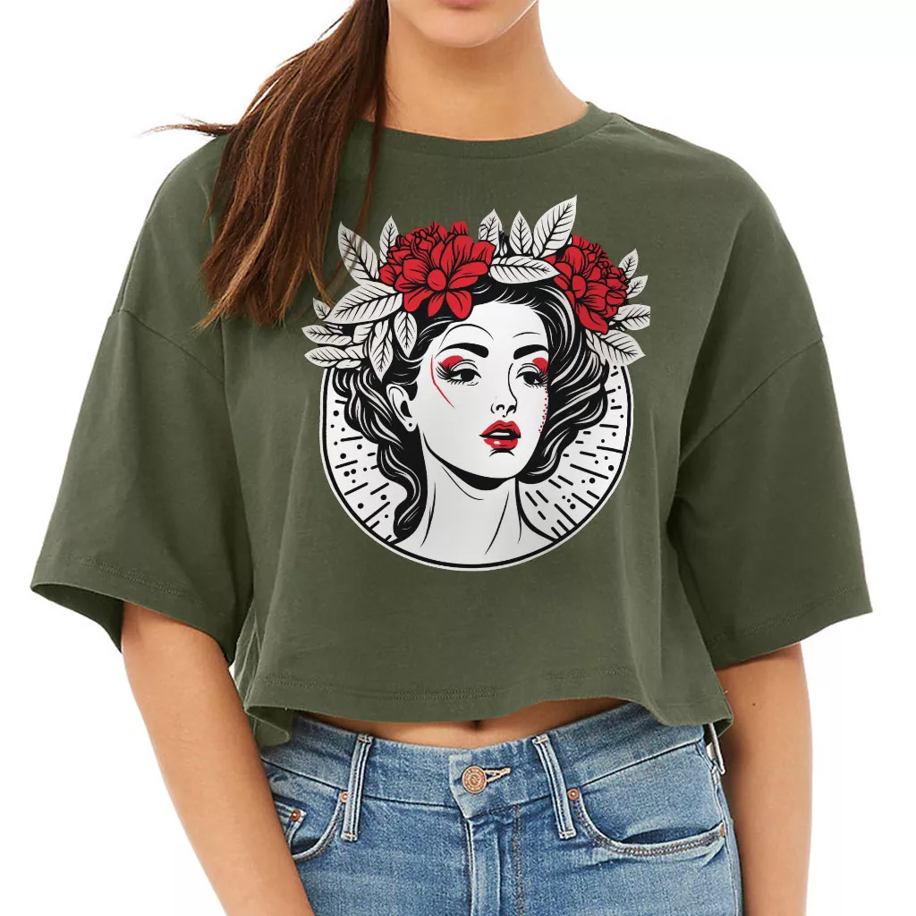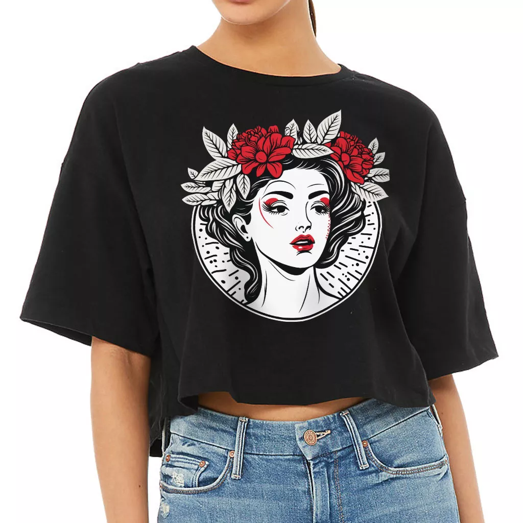 Floral Design Women’s Crop Tee Shirt – Cool Graphic Cropped T-Shirt – Illustration Crop Top