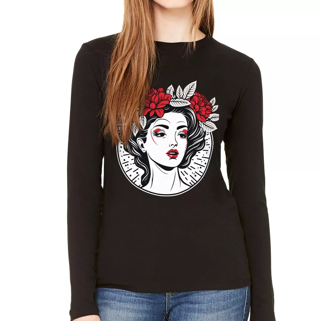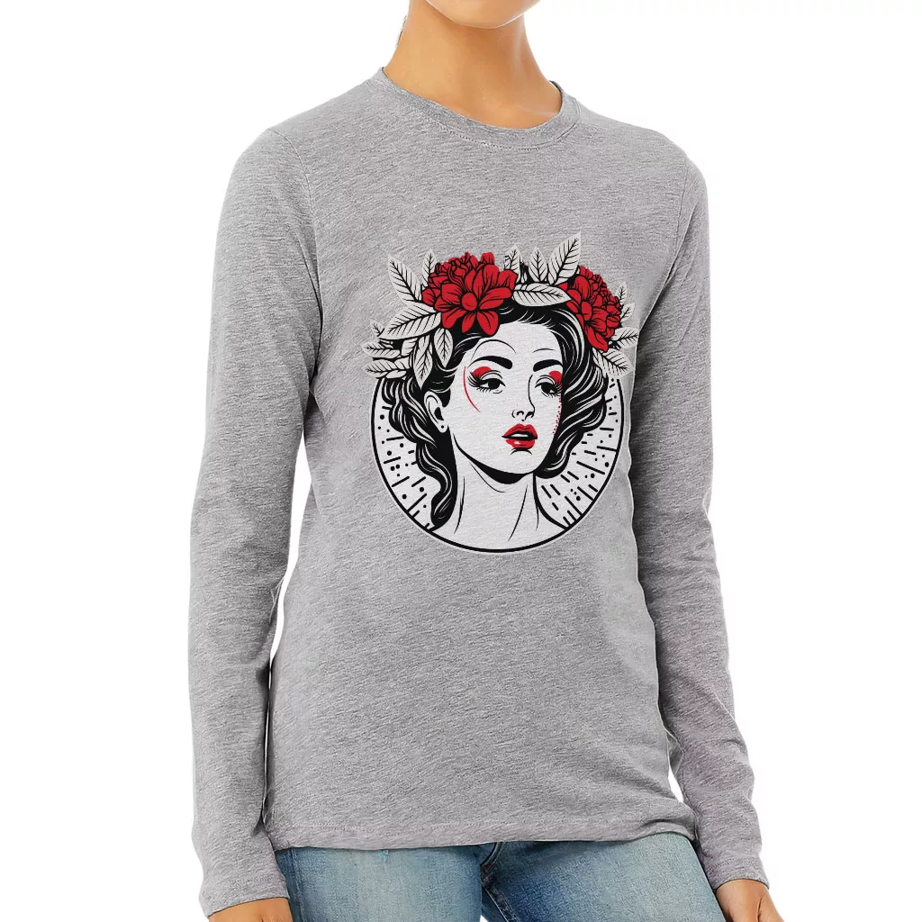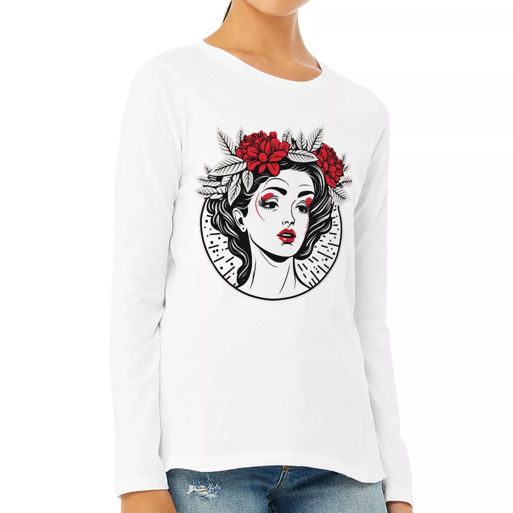 Floral Design Women’s Long Sleeve T-Shirt – Cool Graphic Long Sleeve Tee – Illustration T-Shirt