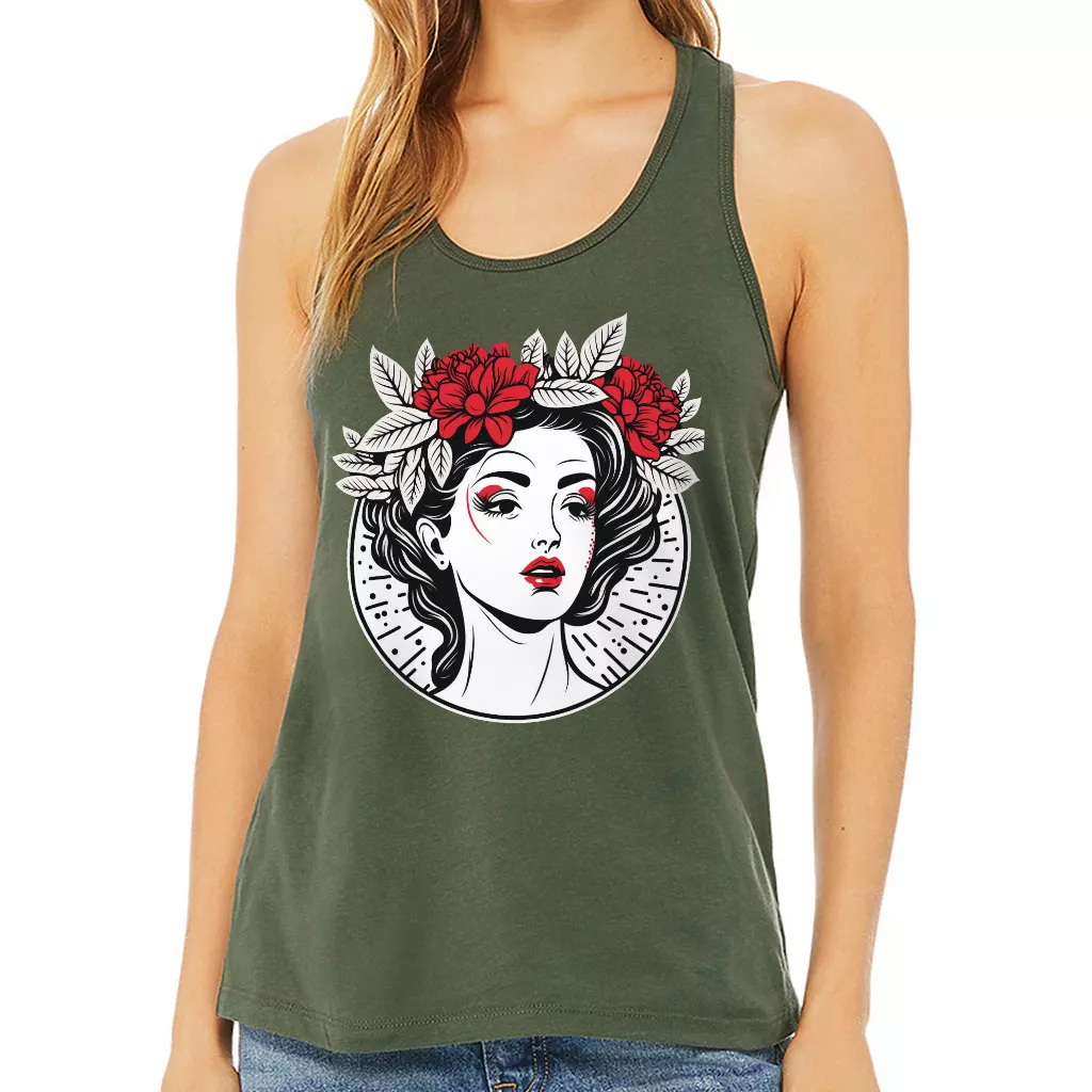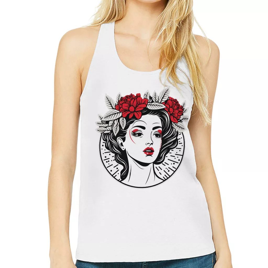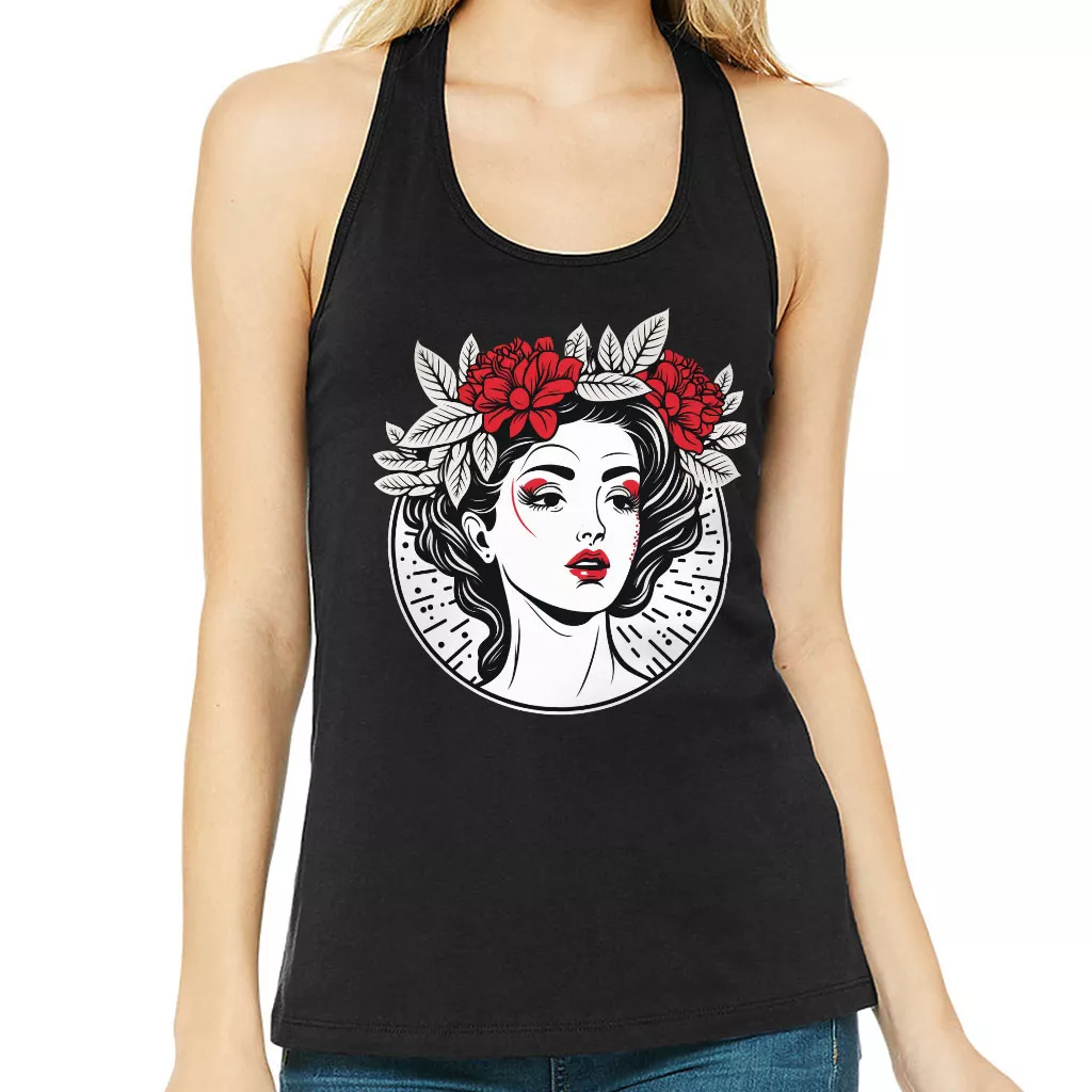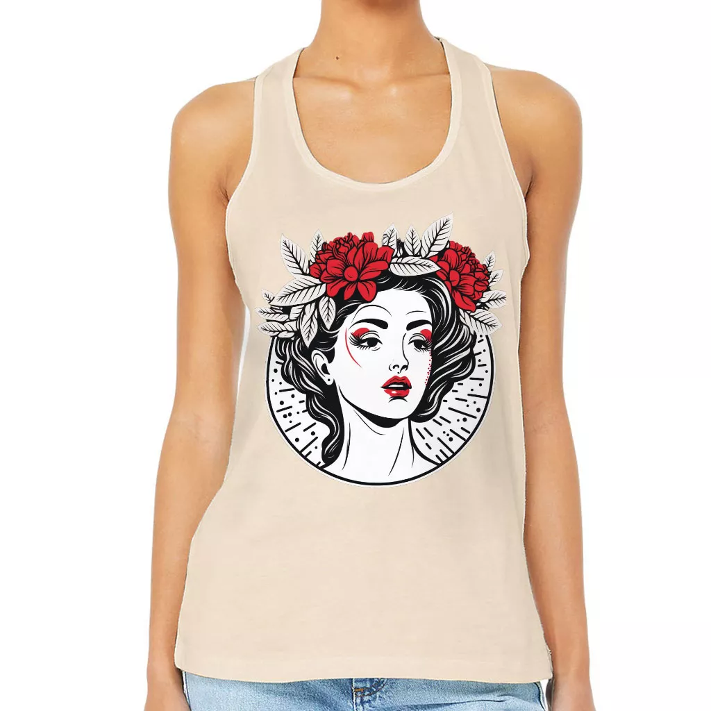 Floral Design Women’s Racerback Tank – Cool Graphic Tank Top – Illustration Workout Tank