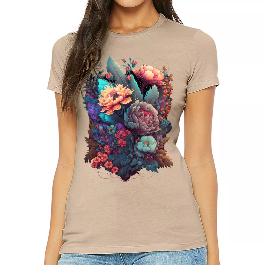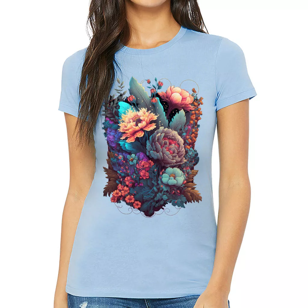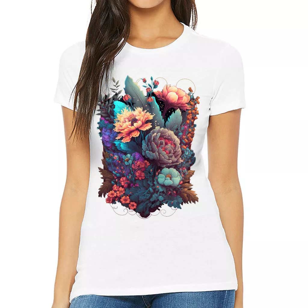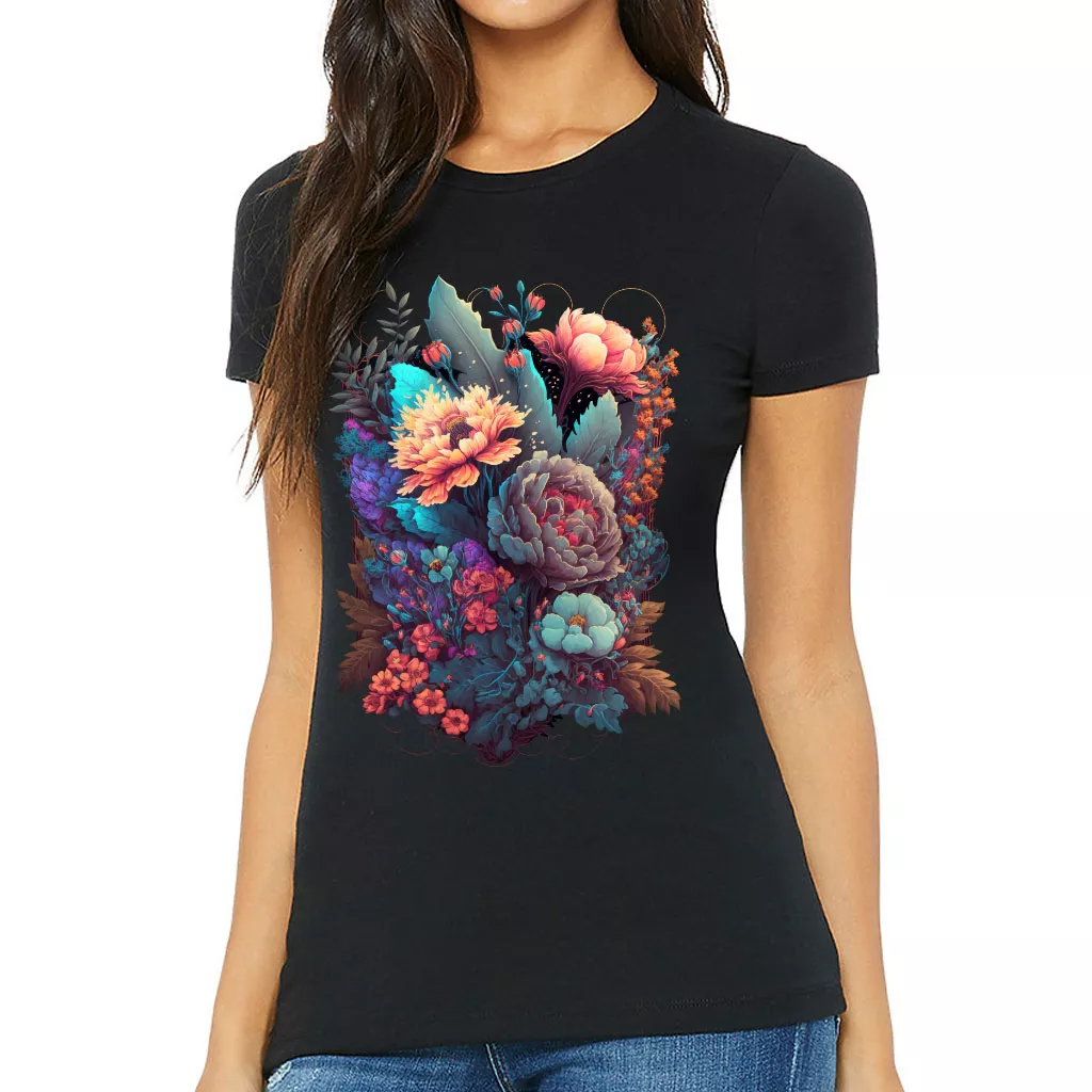 Flower Graphic Slim Fit T-Shirt – Cute Women’s T-Shirt – Digital Art Slim Fit Tee