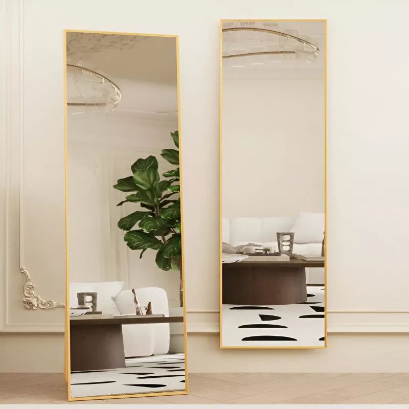 Looking for a way to brighten up your room and add a touch of elegance? This full-length decorative mirror is the perfect solution. Designed to suit a variety of spaces, it can be used as a free-standing mirror, hung on the wall, or leaned against it for a chic, modern look. Whether placed in your bedroom, bathroom, or hallway, this mirror not only reflects your image but also enhances the aesthetic of any room.