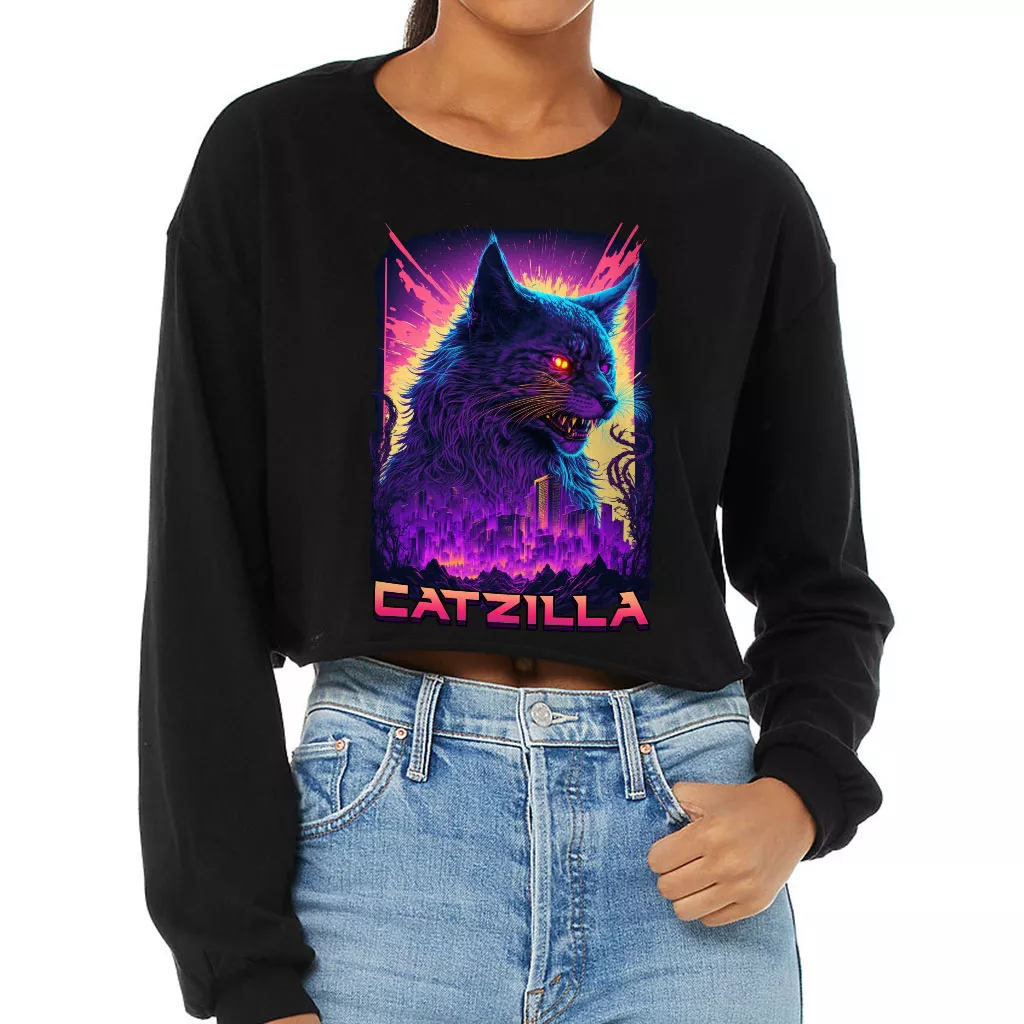 Funny Cat Cropped Long Sleeve T-Shirt – Psychedelic Women’s T-Shirt – Cool Graphic Long Sleeve Tee