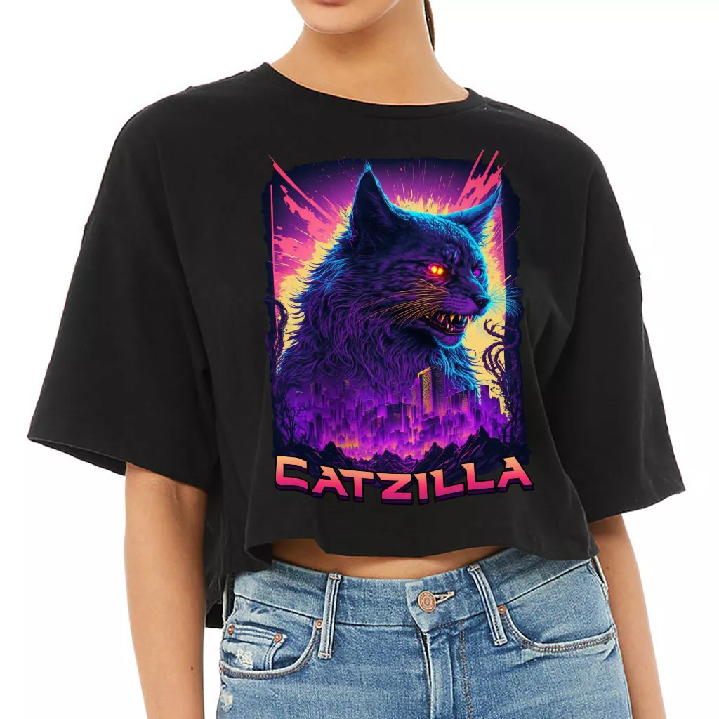 Funny Cat Women’s Crop Tee Shirt – Psychedelic Cropped T-Shirt – Cool Graphic Crop Top