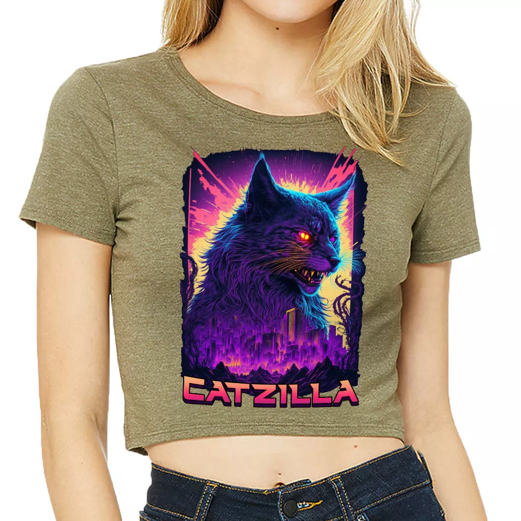 Funny Cat Women’s Cropped T-Shirt – Psychedelic Crop Top – Cool Graphic Cropped Tee