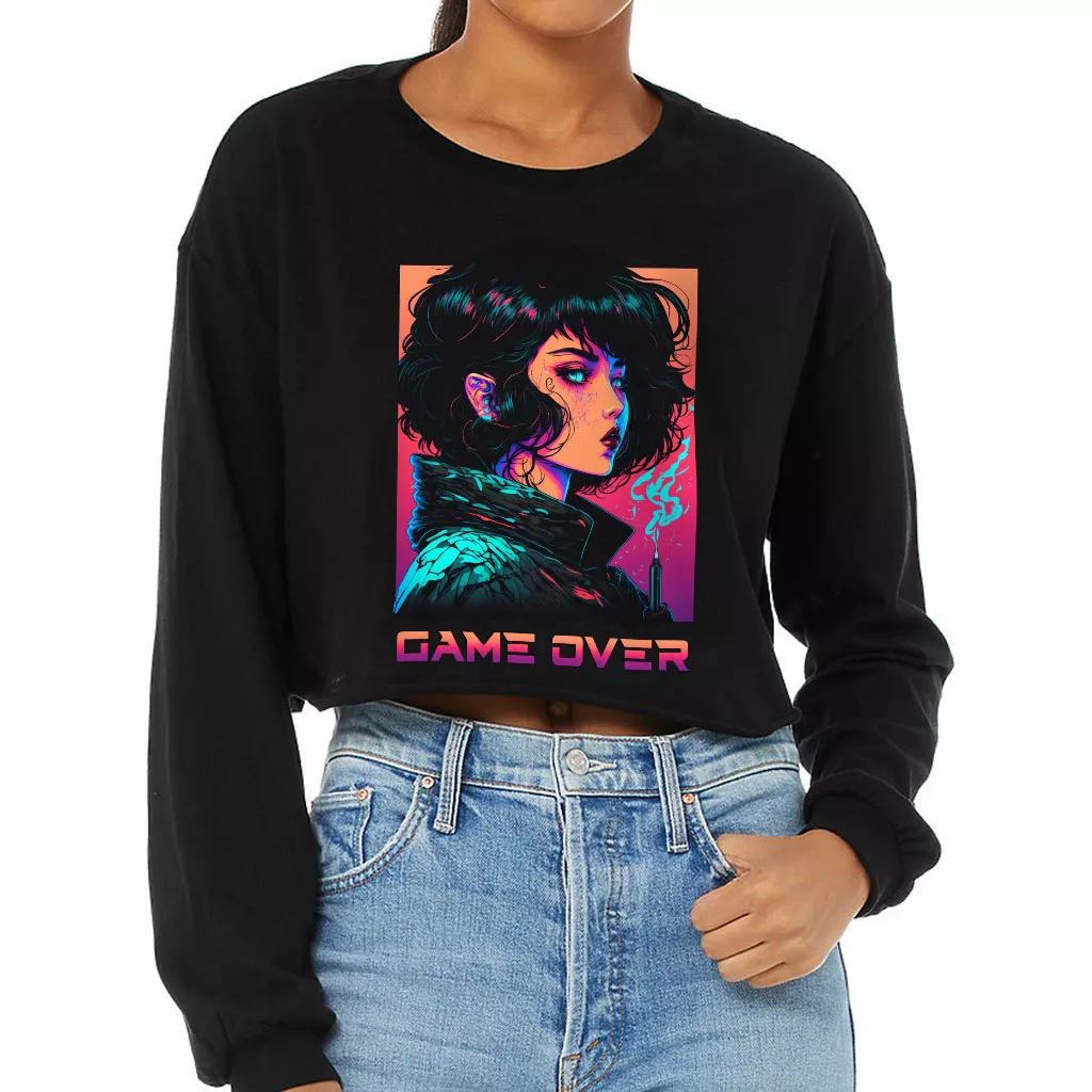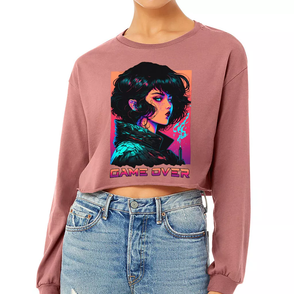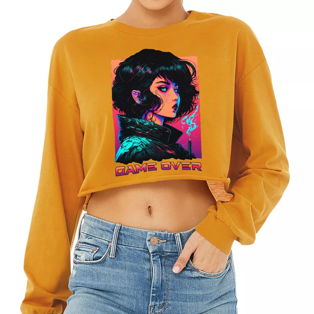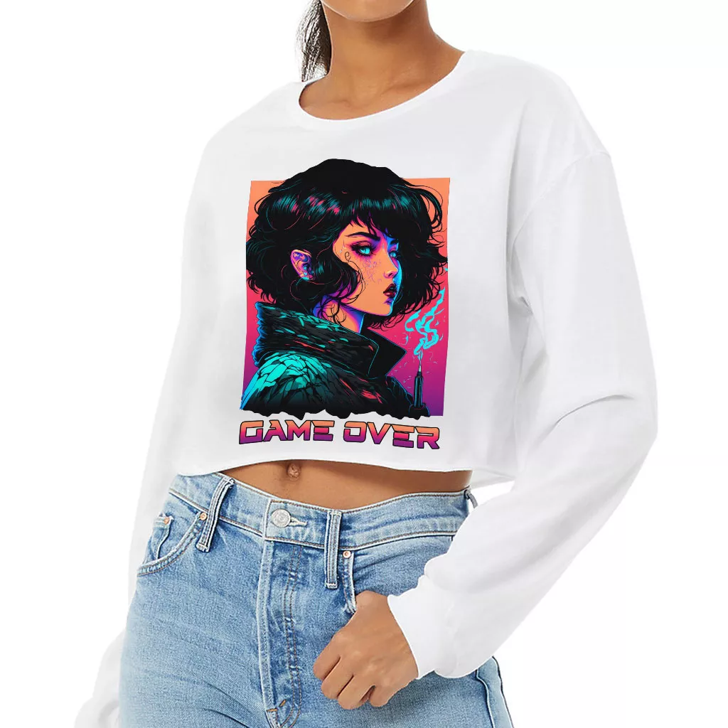 Game Over Cropped Long Sleeve T-Shirt – Cool Art Women’s T-Shirt – Illustration Long Sleeve Tee