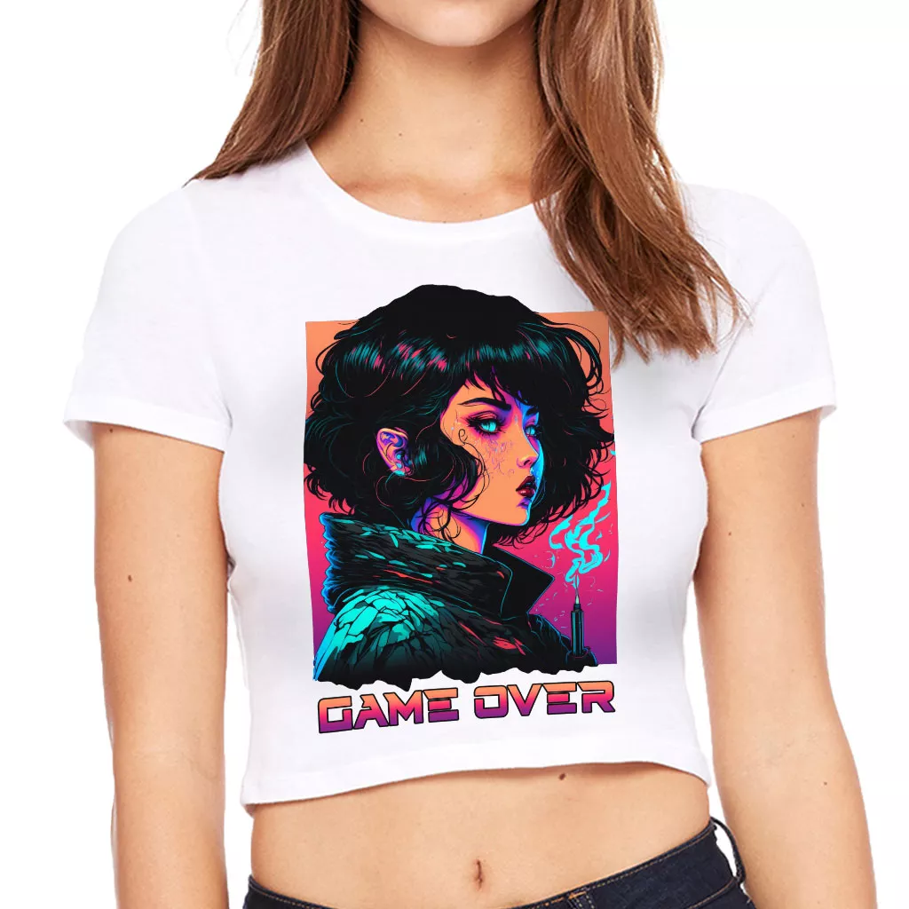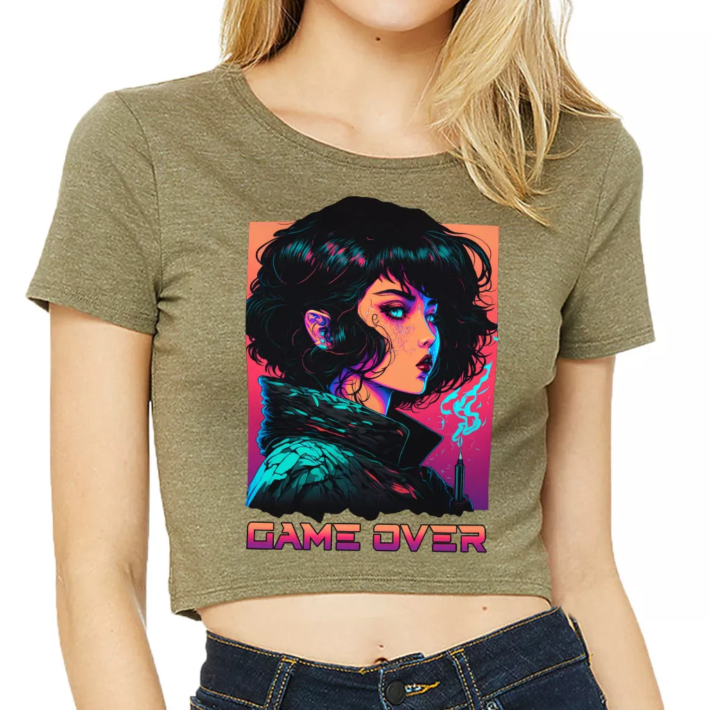 Game Over Women’s Cropped T-Shirt – Cool Art Crop Top – Illustration Cropped Tee