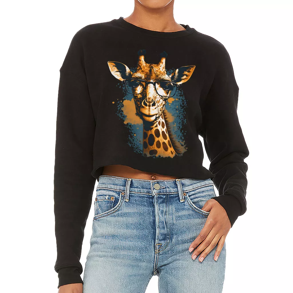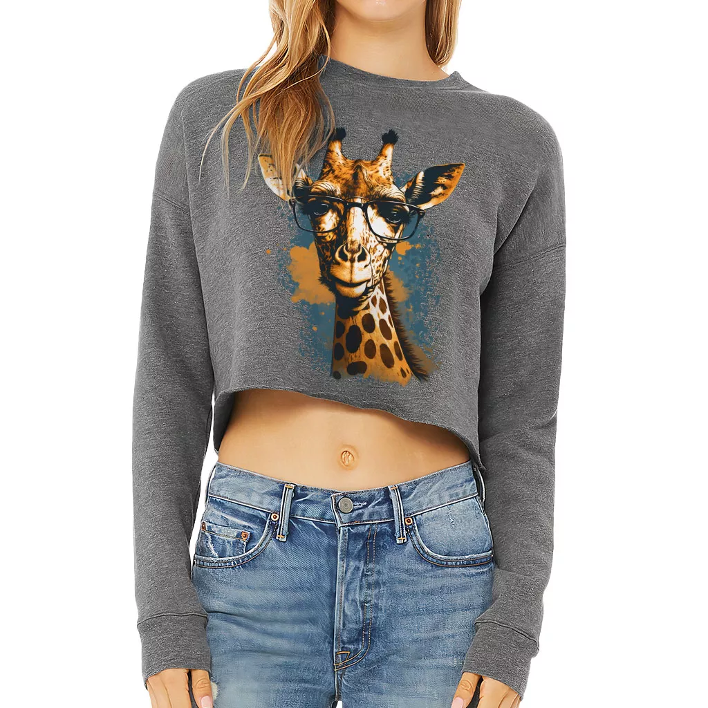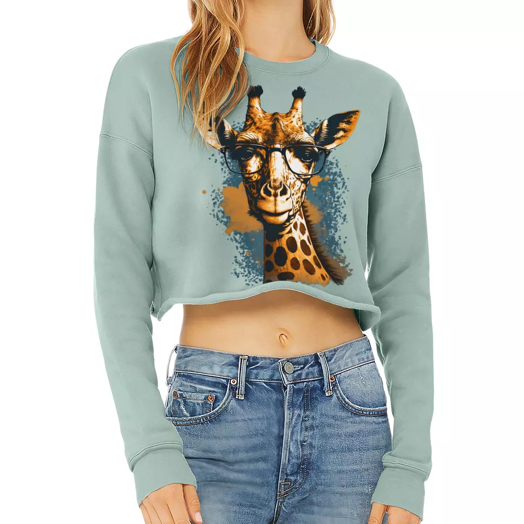 Giraffe With Glasses Cropped Sweatshirt – Funny Women’s Sweatshirt – Animal Crop Crew Sweatshirt