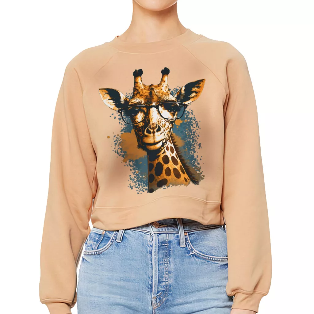 Giraffe With Glasses Raglan Pullover – Funny Women’s Sweatshirt – Animal Pullover