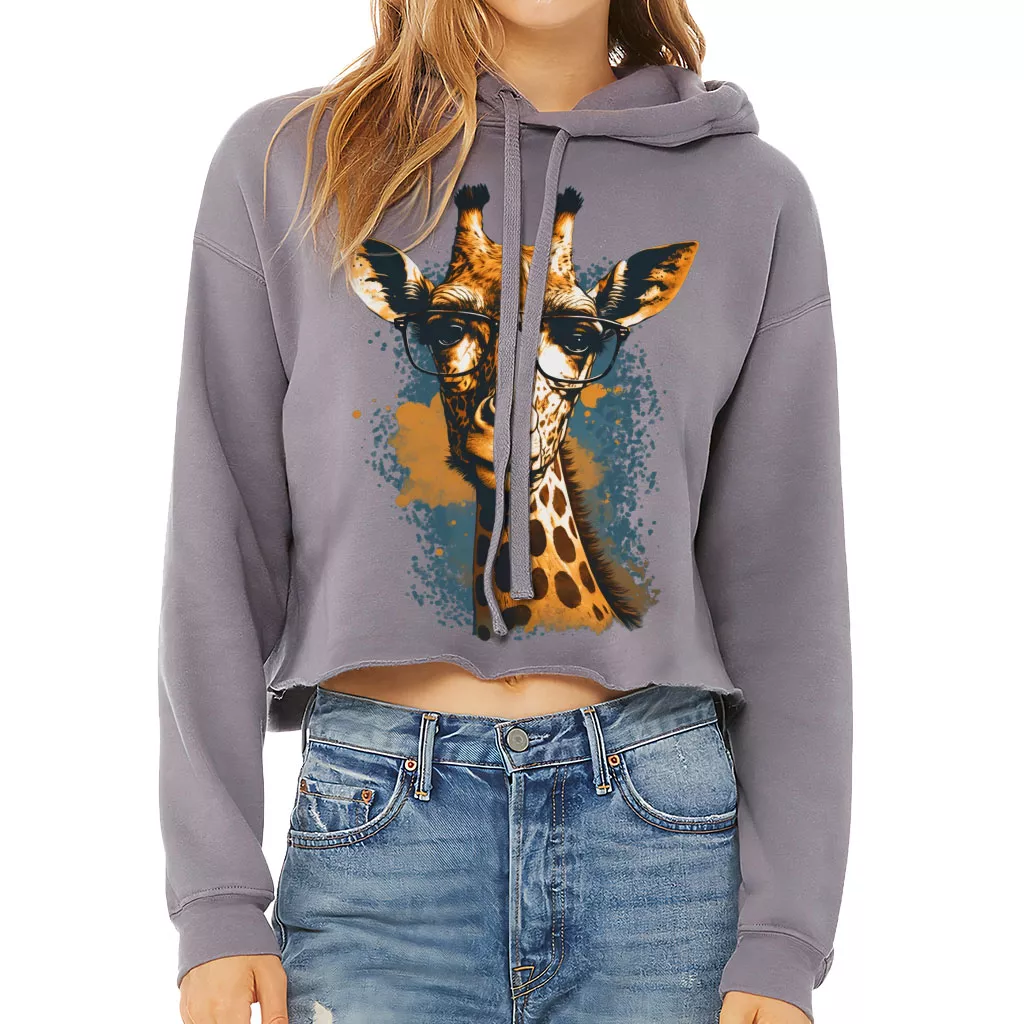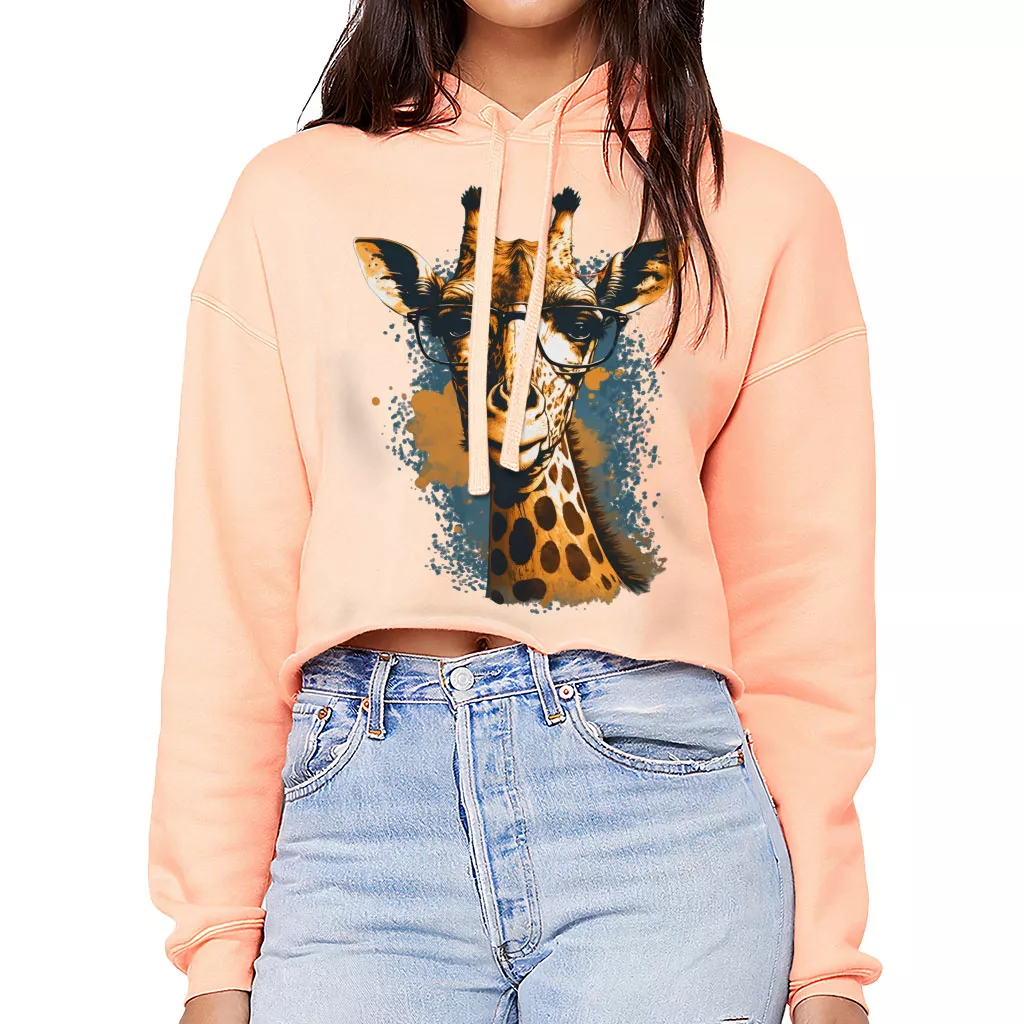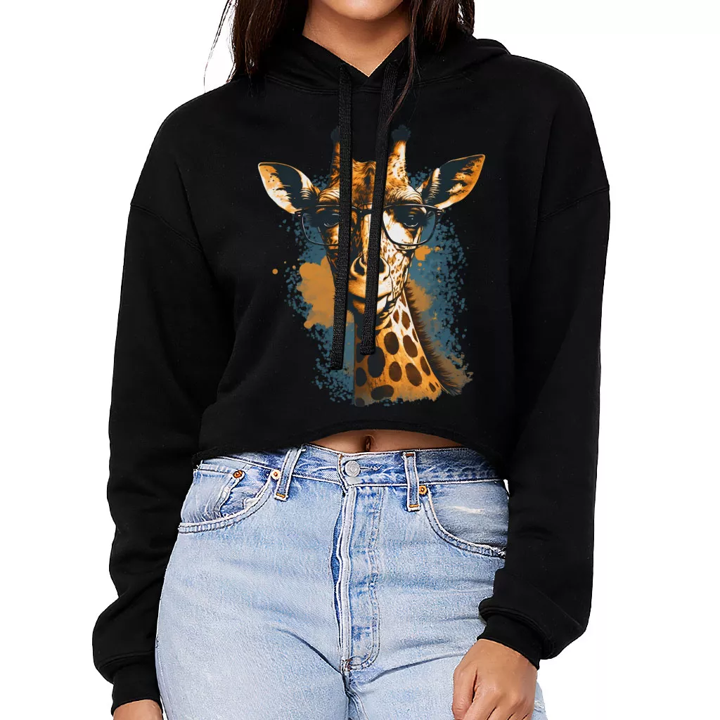 Giraffe With Glasses Women’s Cropped Hoodie – Funny Cropped Hoodie – Animal Hooded Sweatshirt