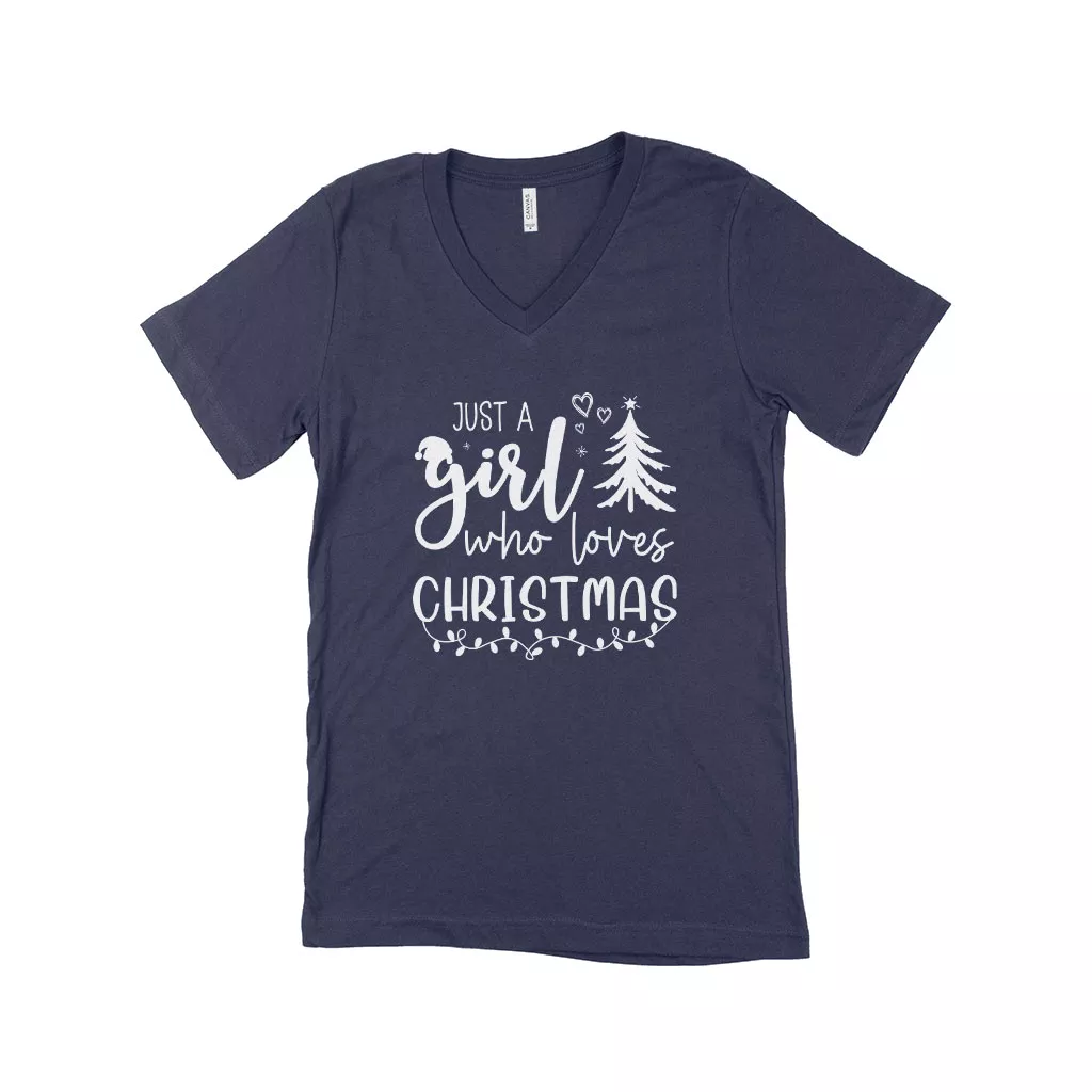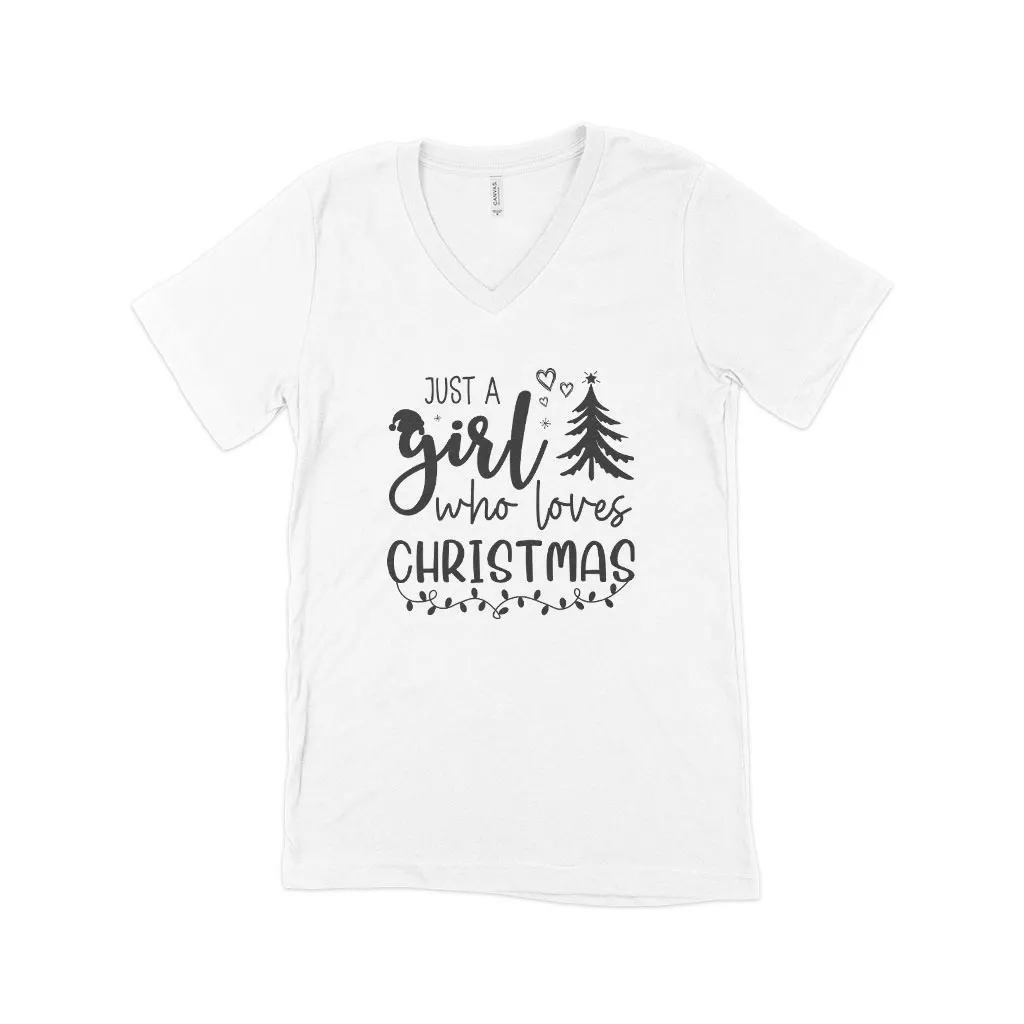 Girl Who Loves Christmas Women’s Jersey V-Neck T-Shirt