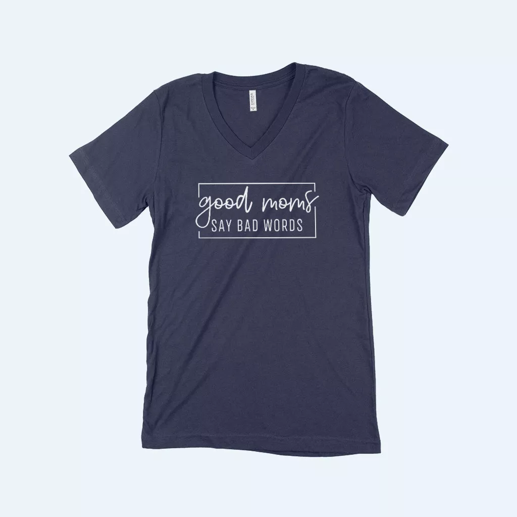 Good Moms Say Bad Words Women’s Jersey V-Neck T-Shirt