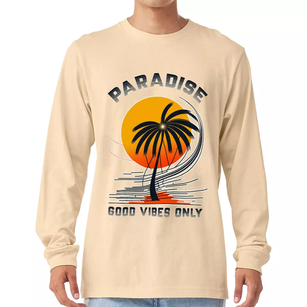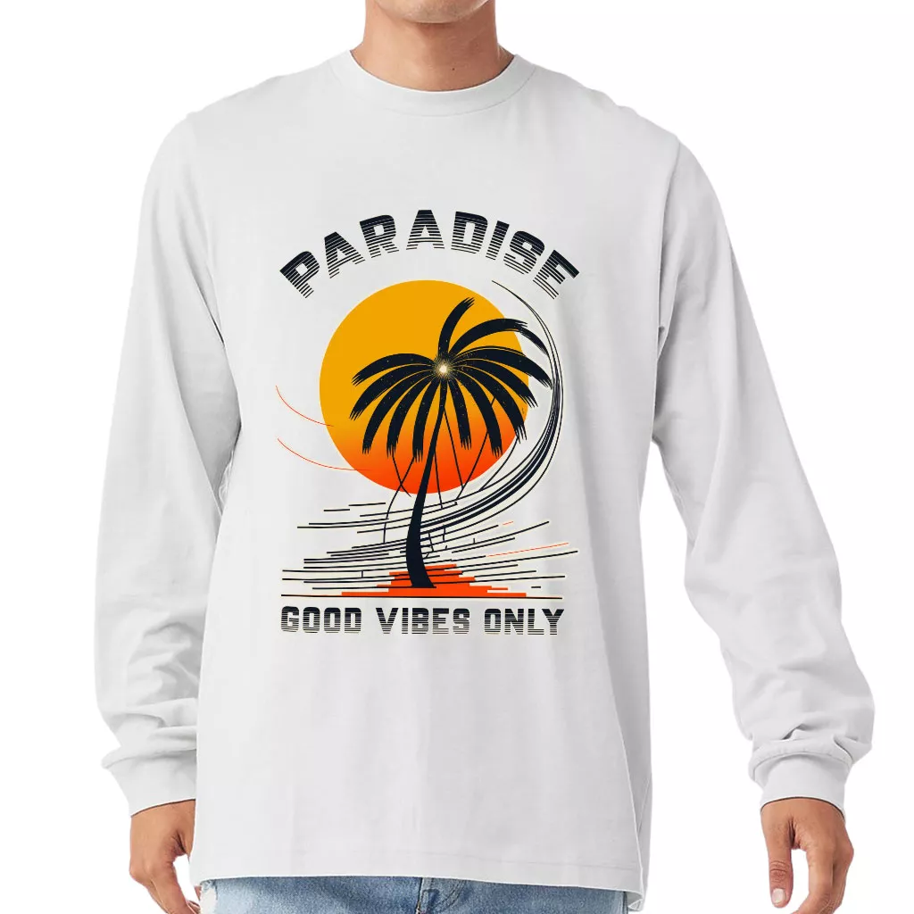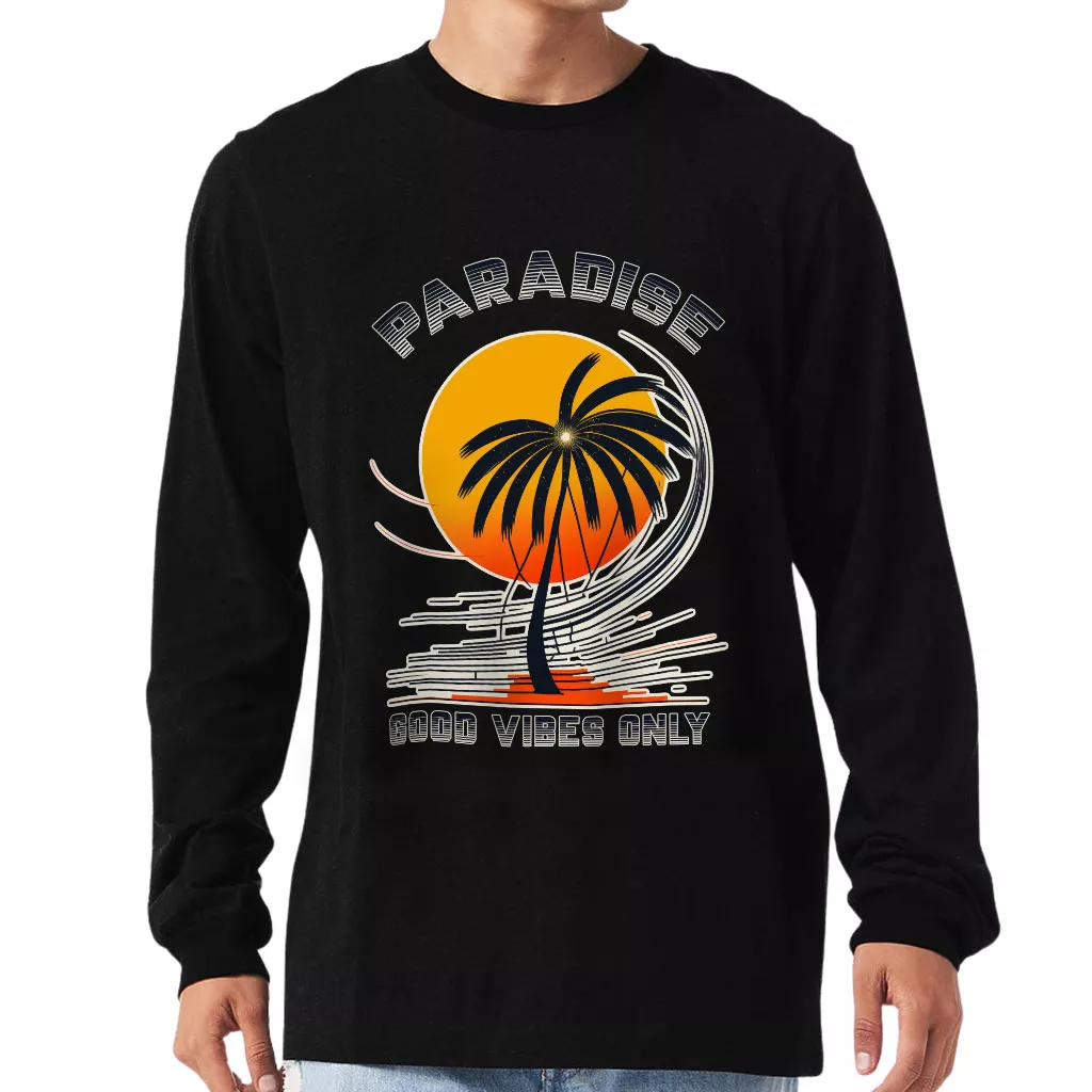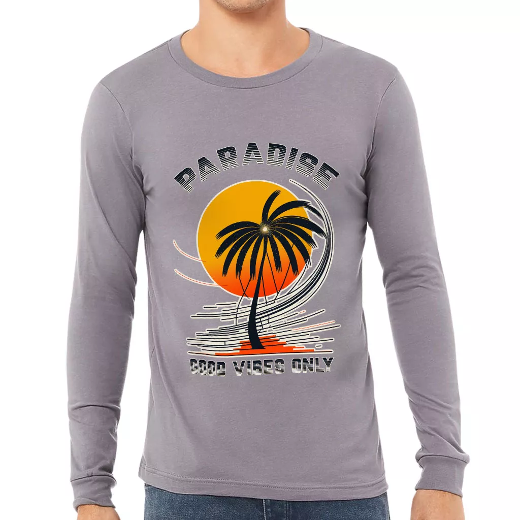 Good Vibes Only Long Sleeve T-Shirt – Paradise T-Shirt – Palm Tree Long Sleeve Tee