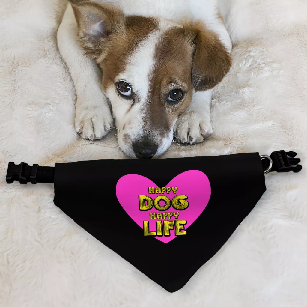 Happy Dog Happy Life Pet Bandana Collar – Phrase Scarf Collar – Art Print Dog Bandana