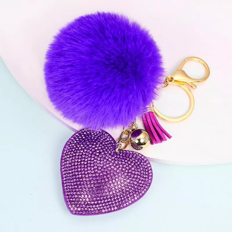 Soft Pom Pom Pendant Keyring Heart Rhinestone Plush Ball Keychain Fashion Women Creative Bag Car Cell Phone Rope Child Gift