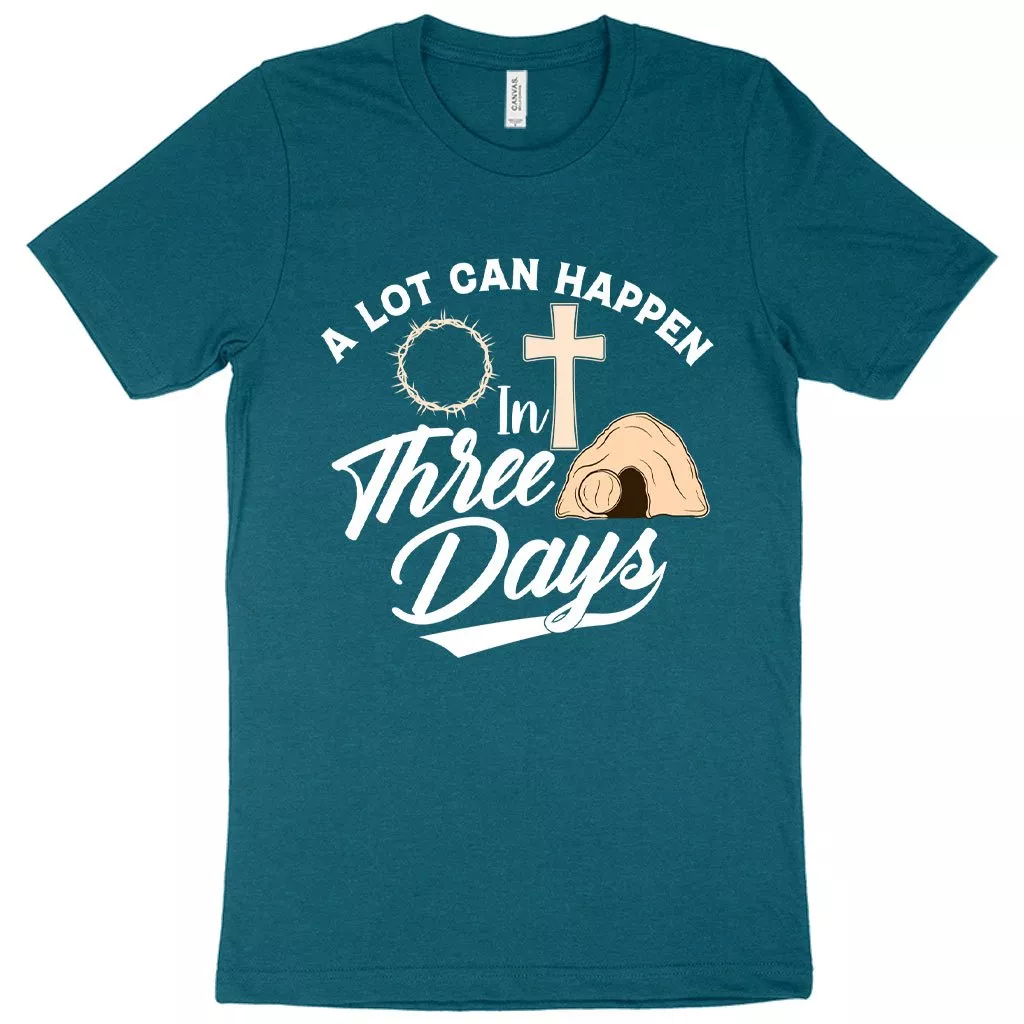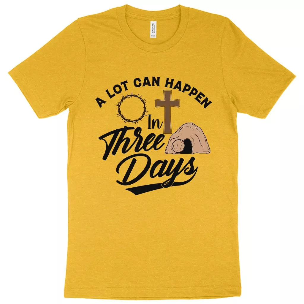 Heather A Lot Can Happen in 3 Days T-Shirt – Christian T-Shirts – Religious Tee Shirts