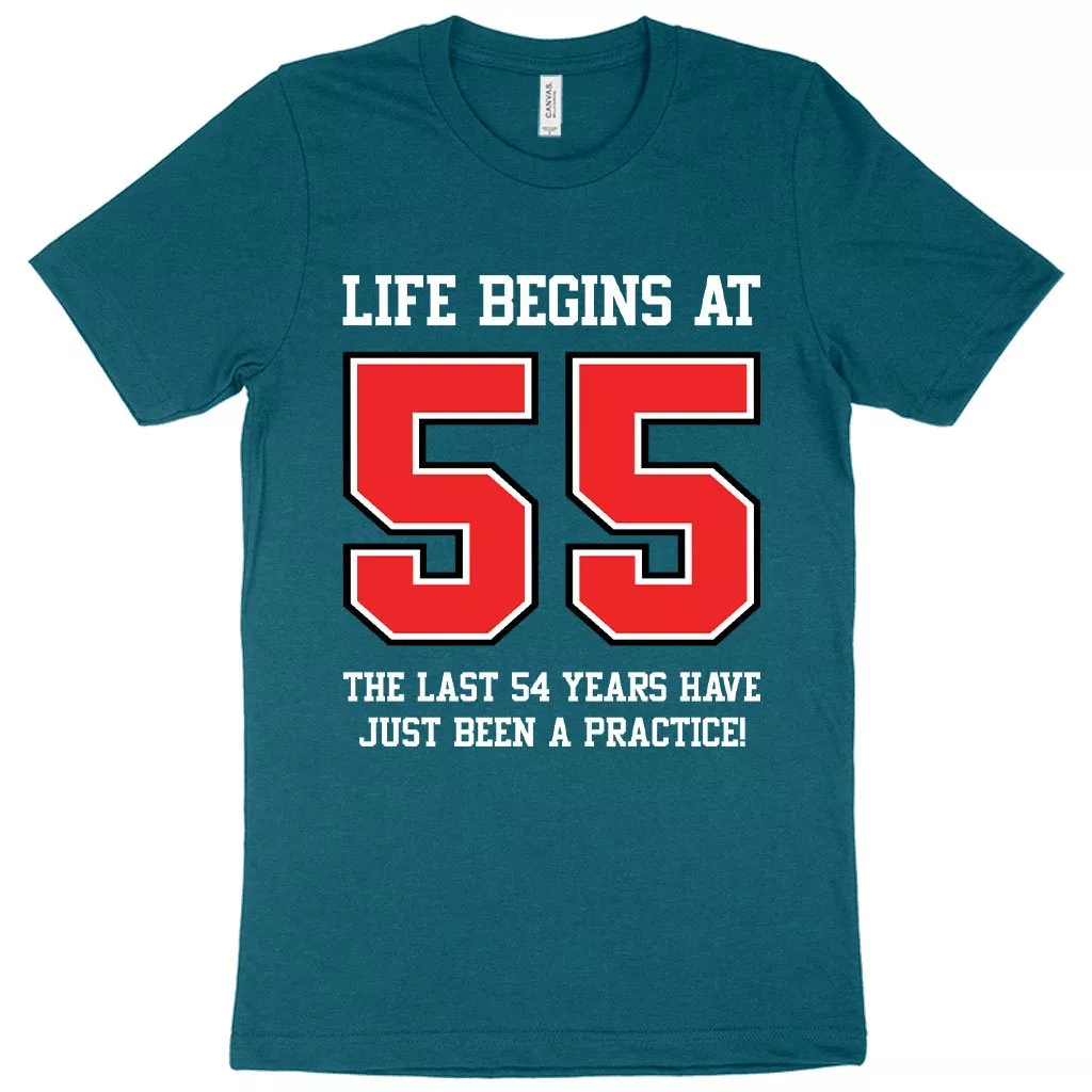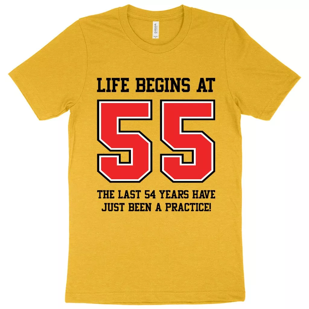 Heather Life Begins at 55 T-Shirt – 55th Birthday T-Shirts – 55 Year Old Birthday T-Shirt