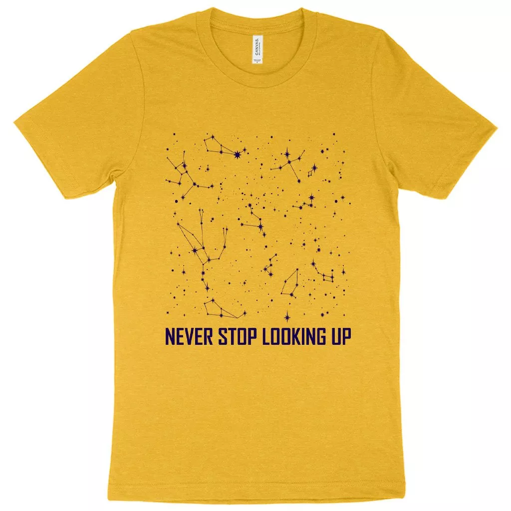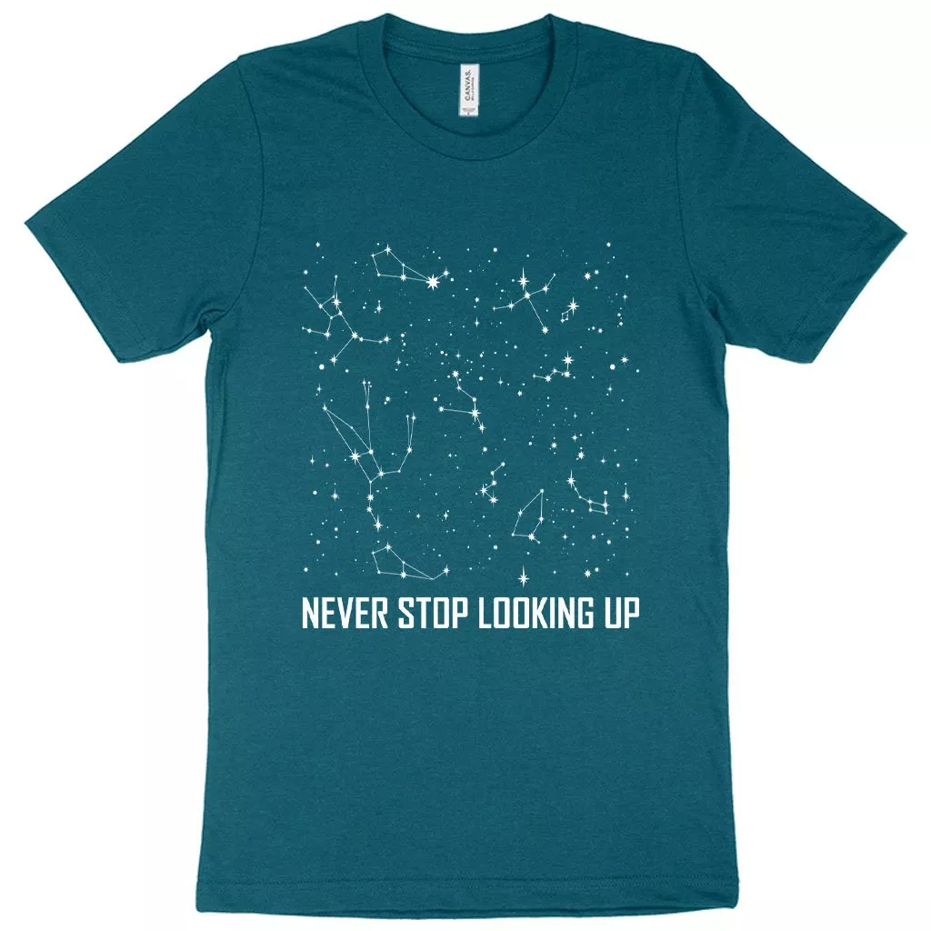 Heather Never Stop Looking Up T-Shirt – Constellation T-Shirt – Stars T-Shirt